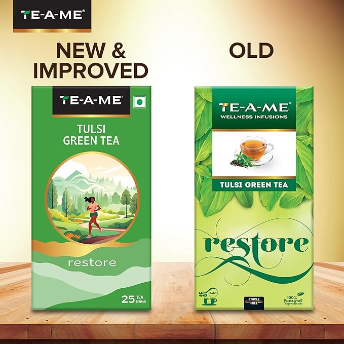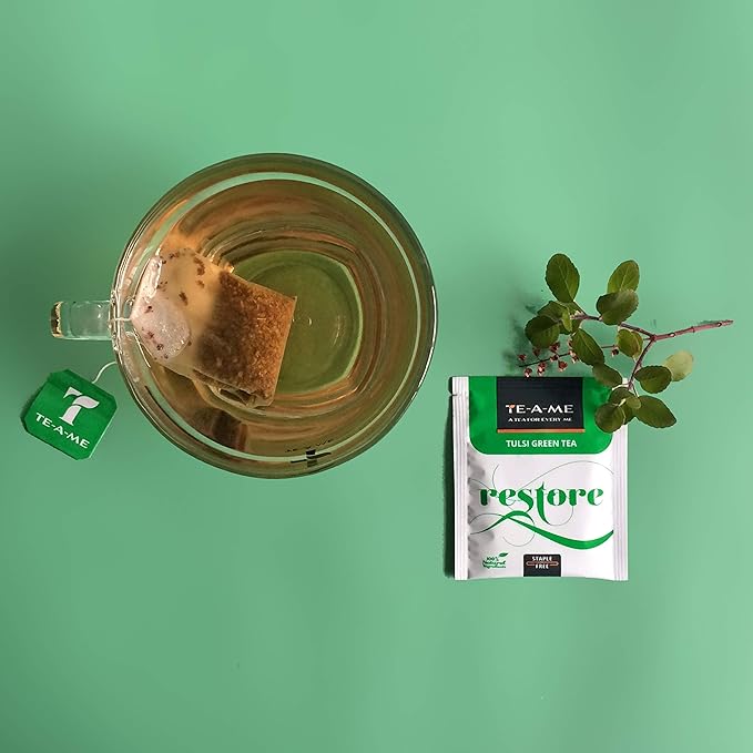 Green Tea - Tulsi : Embrace a holistic approach to wellness with TE-A-ME Restore Tulsi Green Tea, a testament to purity & vitality. Our curated blend, featuring 25 green tea bags per pack, serves as your gateway to a good lifestyle. Experience the rejuven