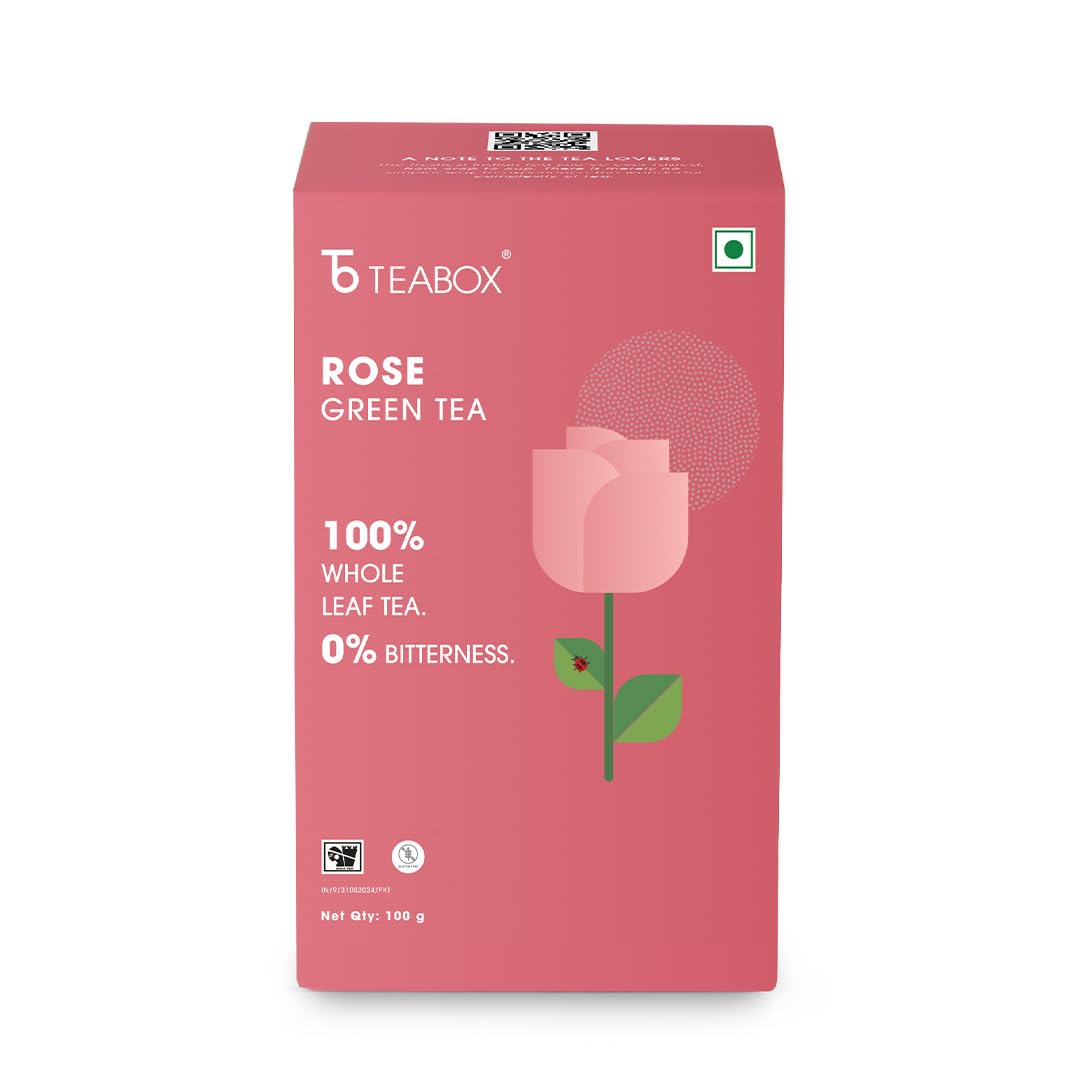 Teabox Rose Green Tea Loose Leaves 100 Grams | For Glowing Skin | Made with 100% Whole Leaf & Natural Rose Petals