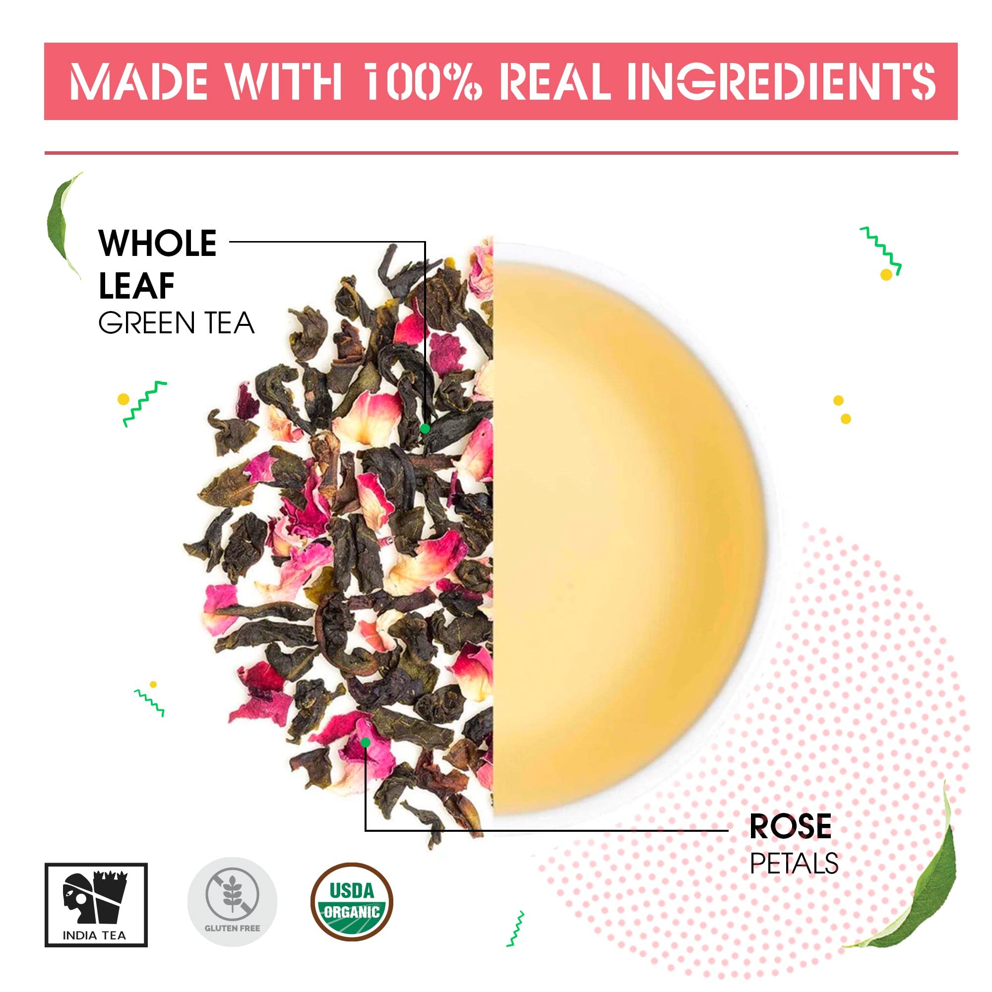 HEALTH BENEFITS Known for keeping skin healthy Rose is a safe solution to skincare; Blended with green tea its natural property helps to keep skin hydrated