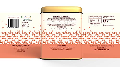 The Indian Chai - Kashmiri Kahwa Green Tea 100g with Almonds, Cardamom, Clove, Cinnamon, Ginger, Rose Petal & Saffron for Digestion, Metabolism, Stress & Anxiety