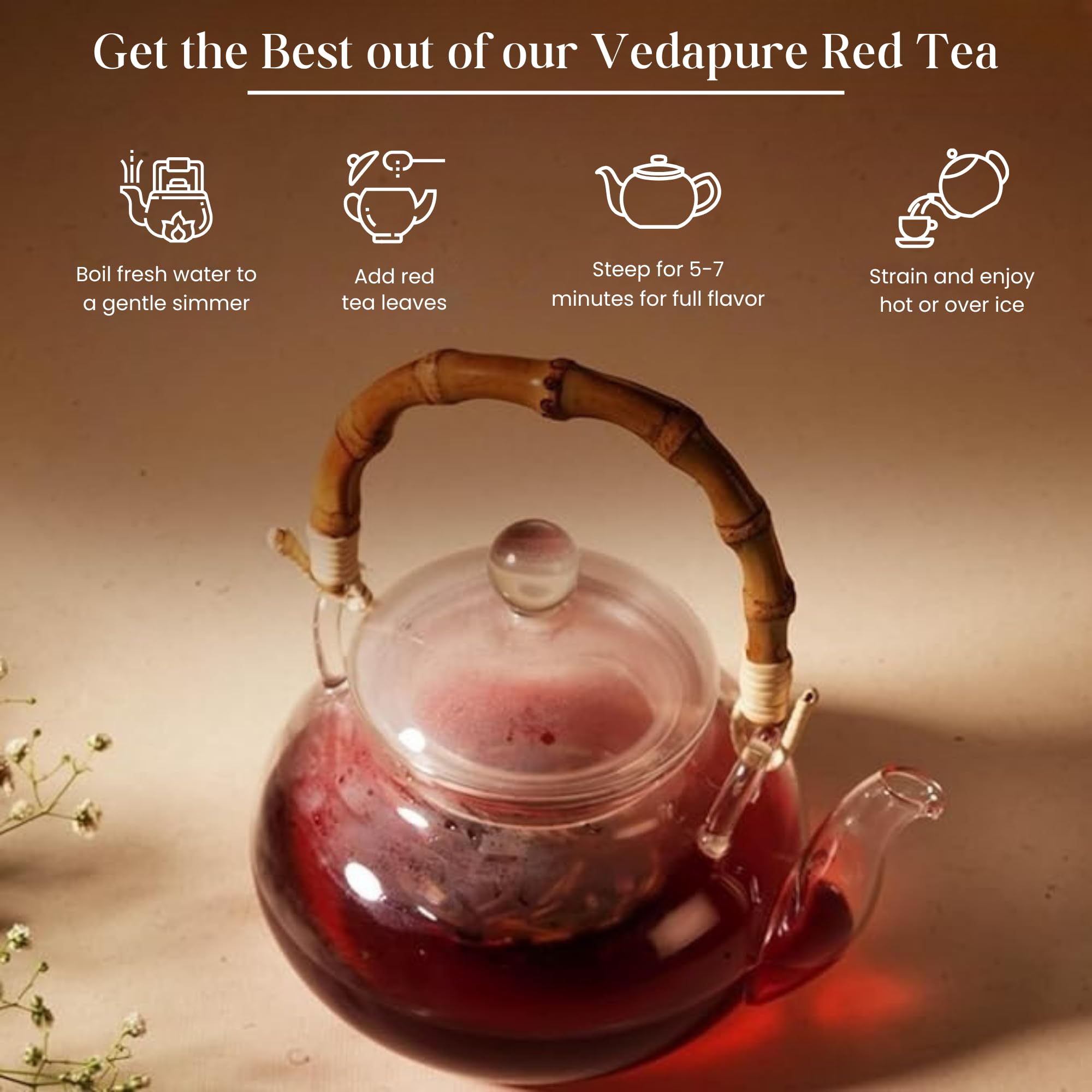 • Caffeine-Free and Vegan: Suitable for individuals adhering to a vegan lifestyle or those sensitive to caffeine VEDAPURE Red Tea provides a guilt-free beverage option that can be enjoyed any time of day.