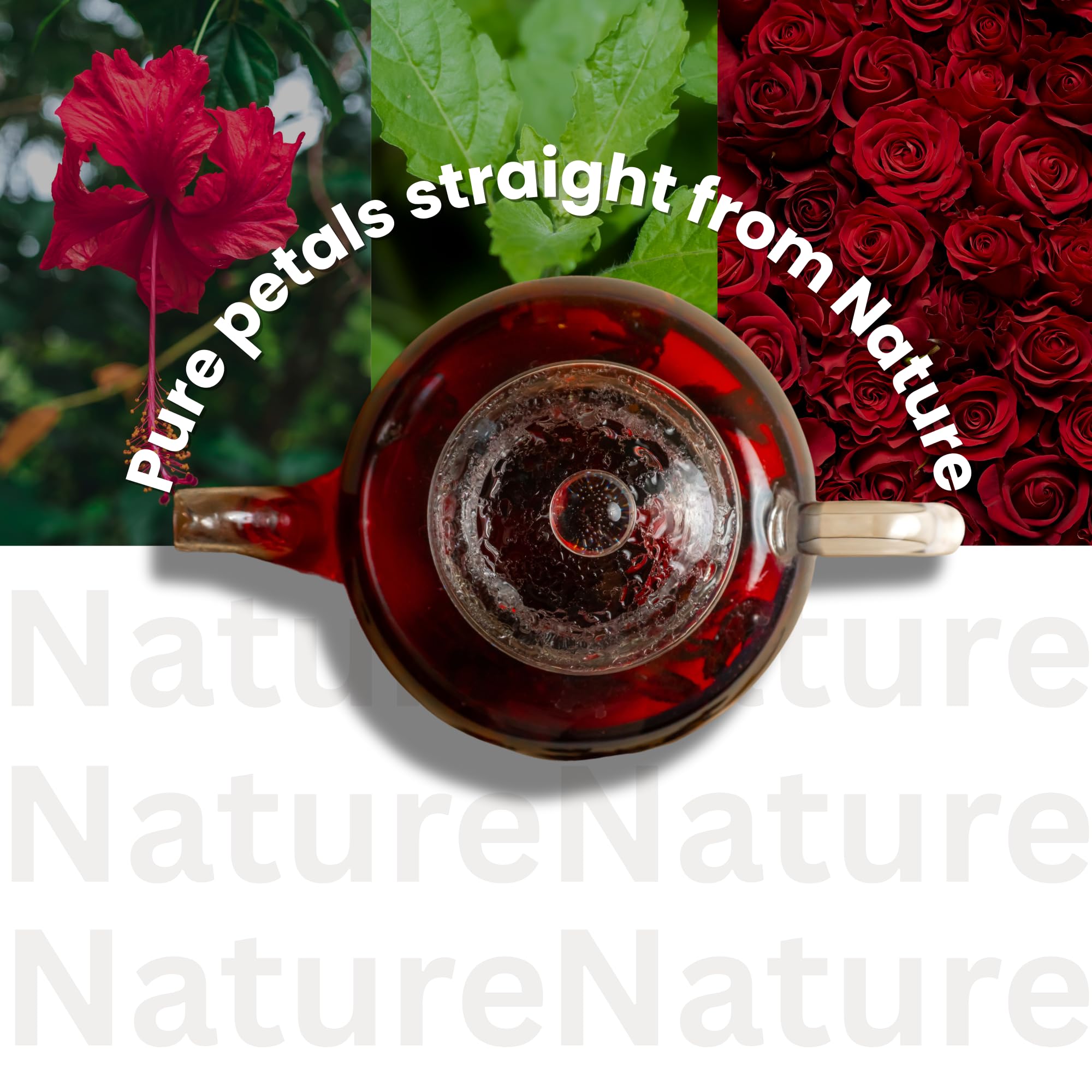 • Blend of Hibiscus Tulsi and Rose: This herbal tea combines hibiscus with the soothing properties of tulsi (holy basil) and the floral notes of rose flower. Together they create a harmonious blend that promotes relaxation and supports overall well-being.