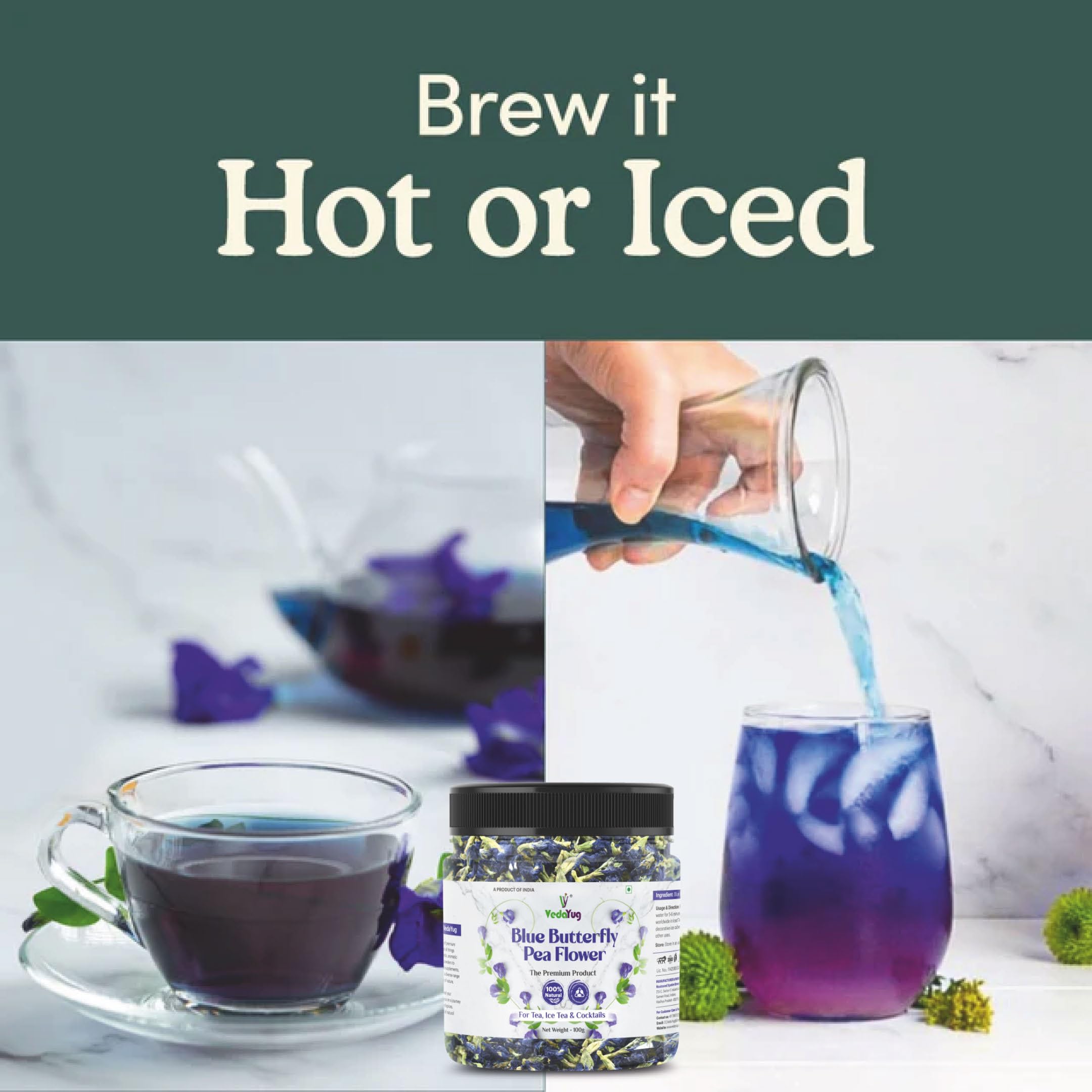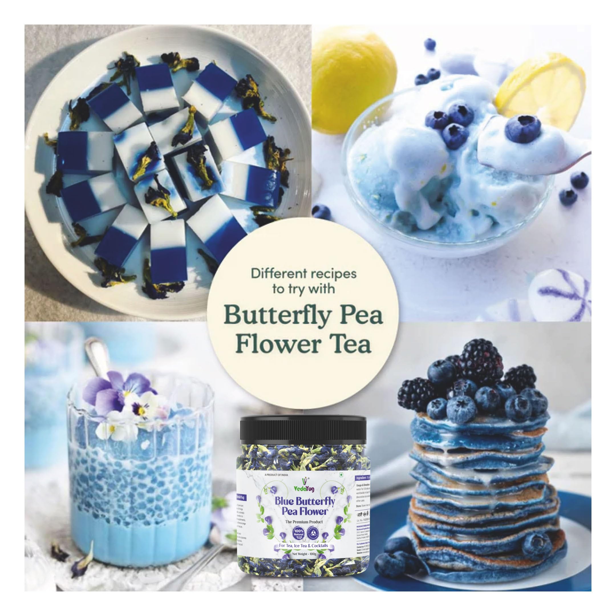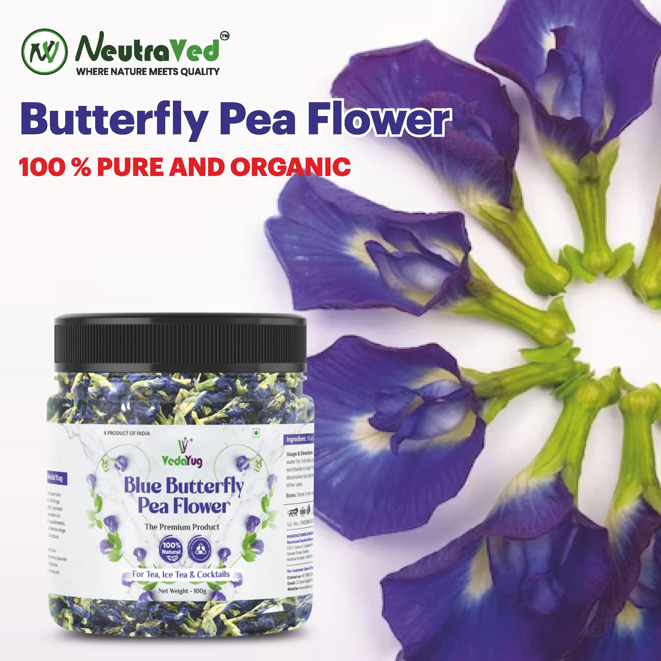 VY VedaYug Blue Butterfly Pea Flower Tea 100 Gram | Making ICE and Herbal Tea with ANTI-OXIDANT Caffeine Free | Natural Colourant | Use with Green Tea - 100g