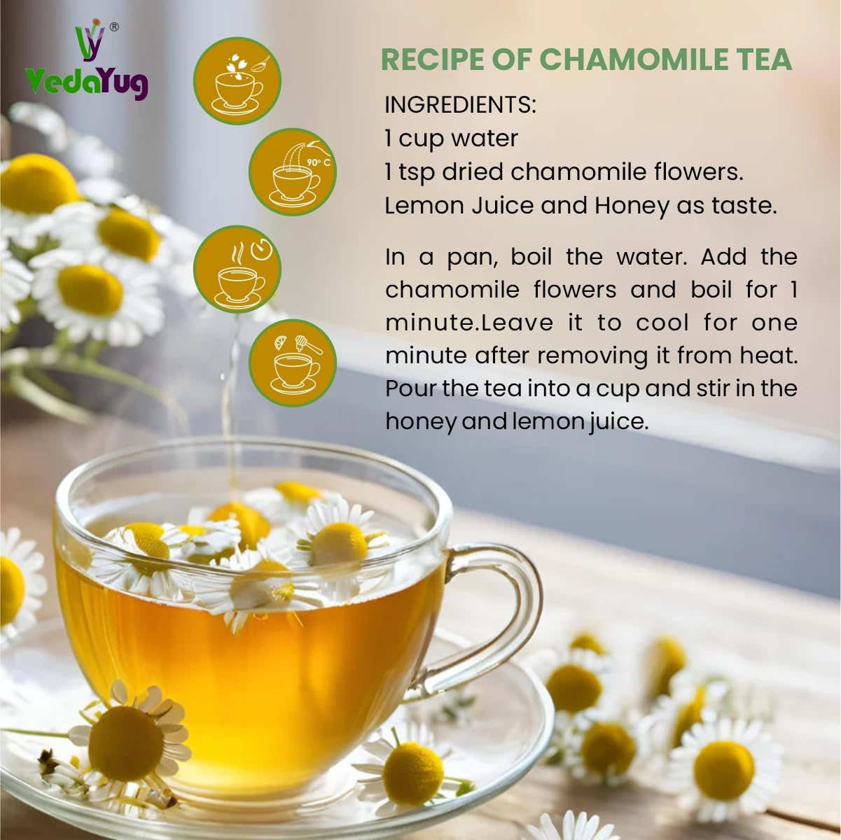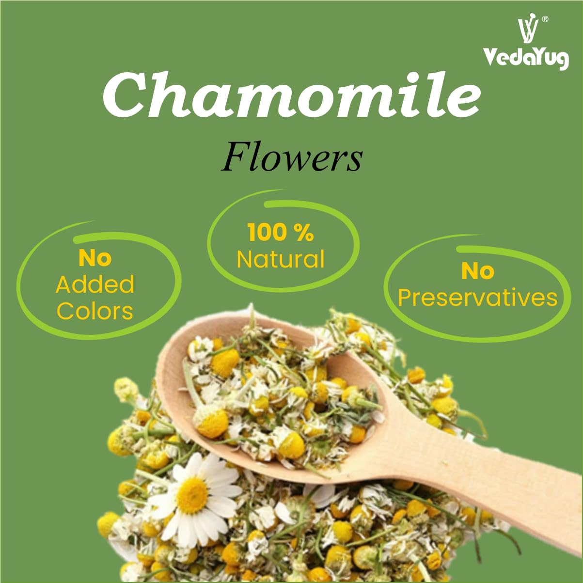 VY VedaYug Chamomile Flower Tea - 30gm | Pure Whole Flower Buds of Chamomile | Herbal Sleep Tea - Caffeine Free - Stress Relief - 30g