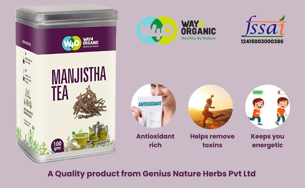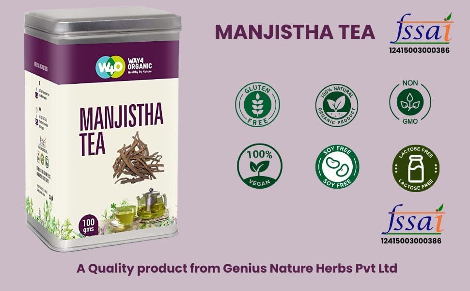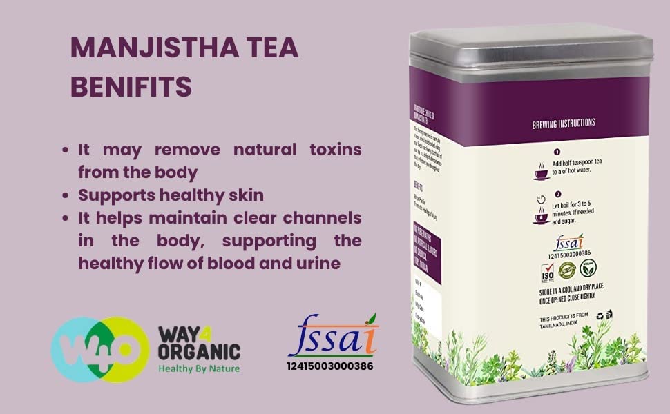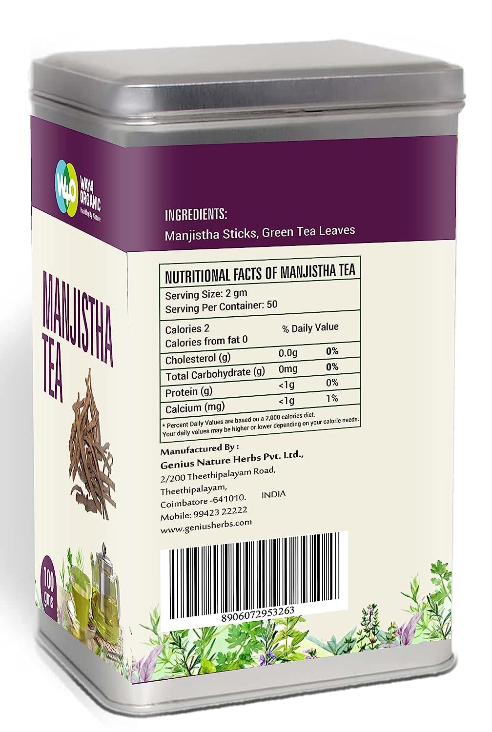 WAY 4 ORGANIC W4O Manjistha Tea 100 g Canister | Rubia cordifolia | Pack of 1