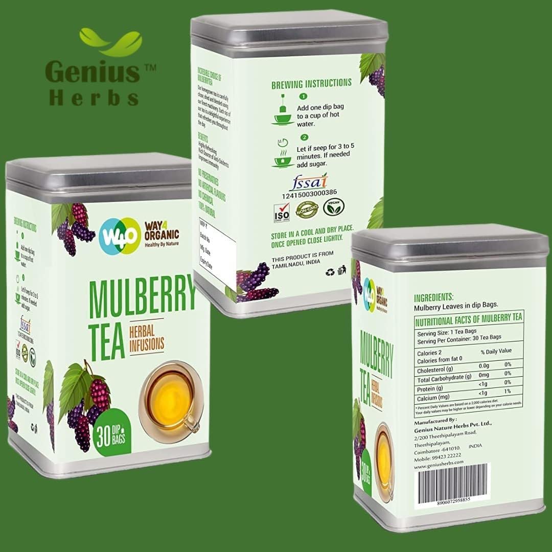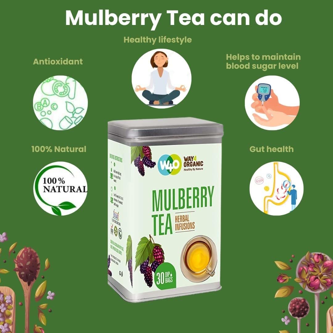 WAY 4 ORGANIC W4O Mulberry Tea in Dip bags 30s Canister Pack of 1