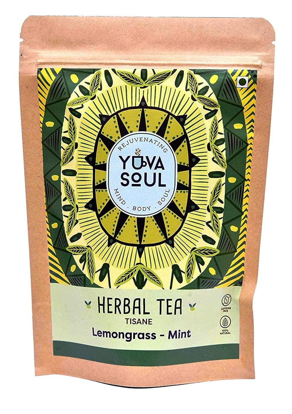 YUVA SOUL Lemongrass Tea Lemongrass Green Tea Mint TeaMint Lemongrass Tea Lemongrass Mint Tea For Immunity Booster and Weight Management Hair & Skin Pure Herb Caffeine Free Detox Tea - 75 Gm