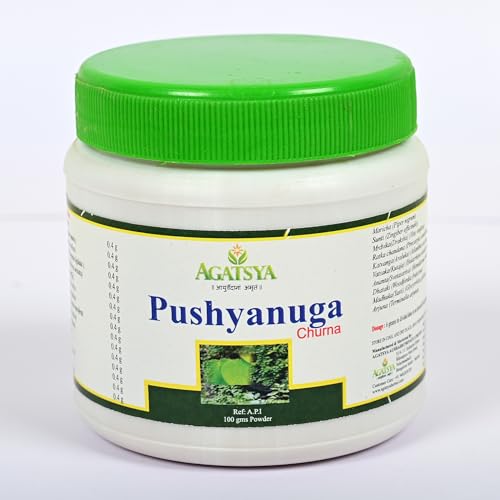 Agatsya Pushyanuga Churna is a polyherbal formulation that is highly beneficial in treating bleeding disorders. In Ayurveda, this blend is utilized for menstrual disorders such as Menorrhagia, Metrorrhagia, Leucorrhea, Excessive menstrual bleeding of various etiology. Additionally treats Uterine infections , Haemorrhoids, Diarrhoea and Dysentry .