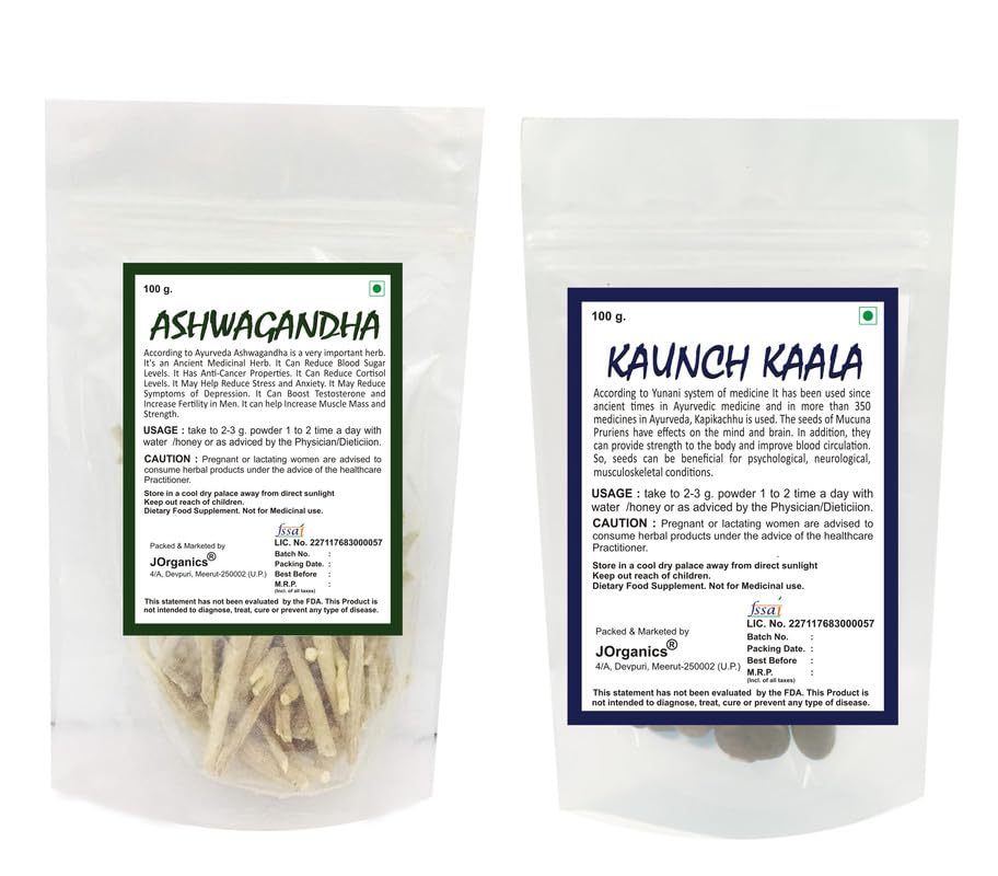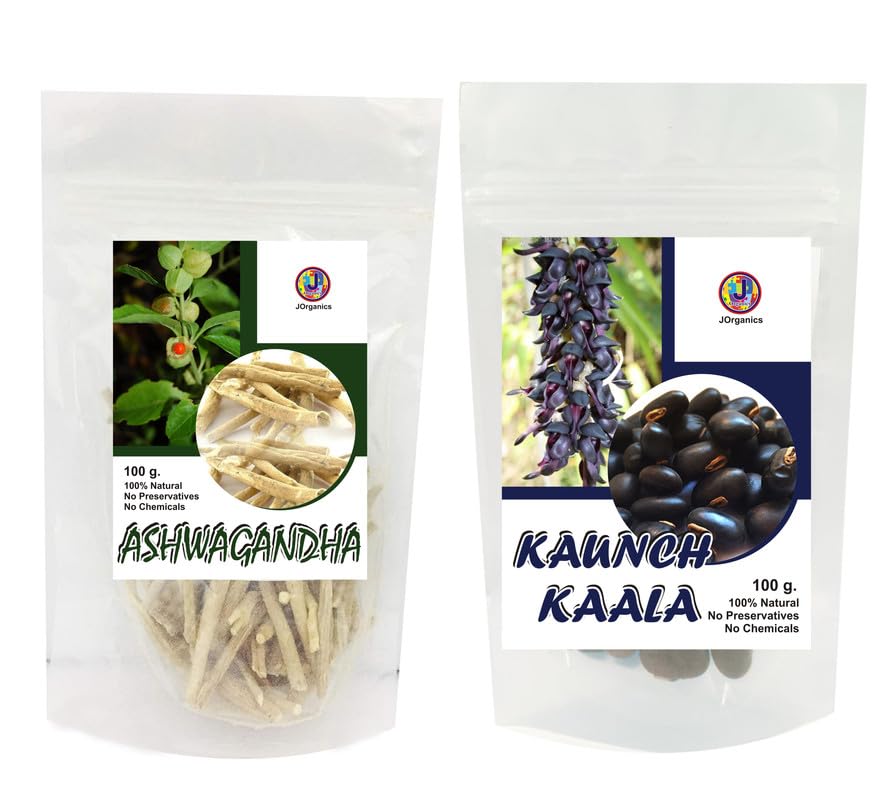 JOrganics Ashwagandha Roots And Kaunch Black Seeds Natural Herbal Blend Powerful Health Benefits200 Grams