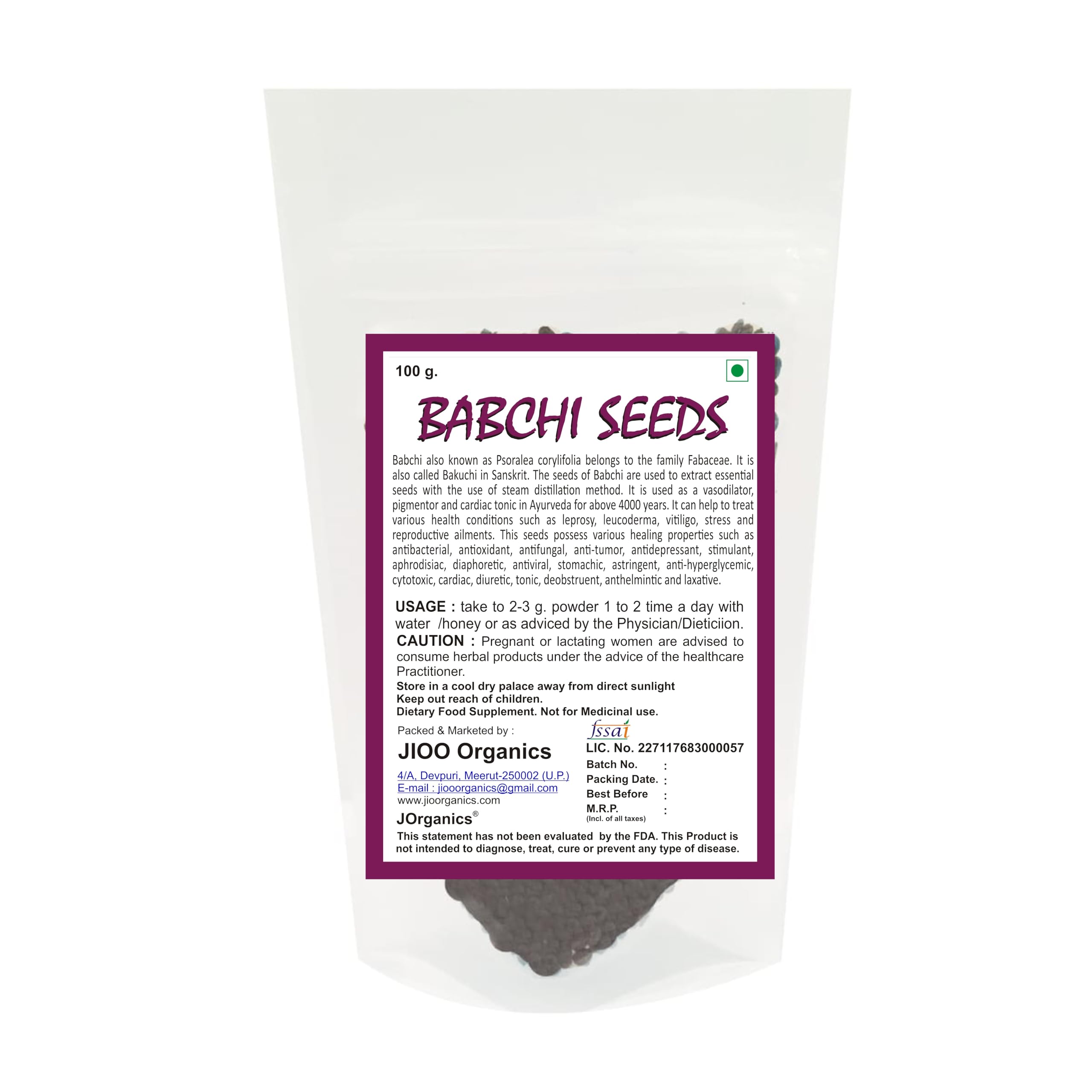 JOrganics Babchi Seeds - Pure Ayurvedic Herbal Product for Skin Vitiligo Psoriasis Leucoderma Psoralea Corylifolia - 100gram Pack of 1