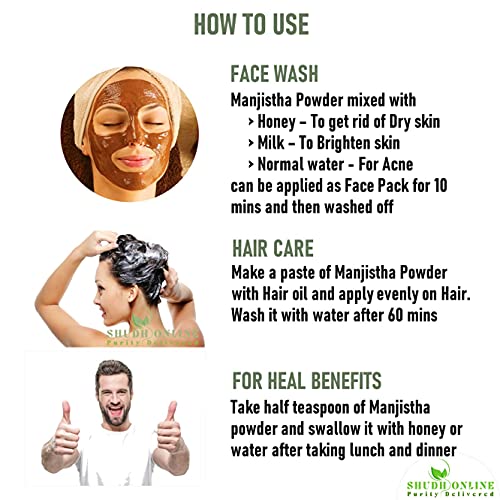 Shudh Online Manjistha Powder Majith Organic Root Powder (50 Grams) Indian Madder (Eating Skin whitening Face Hair) Manjishtha Manjishta Manjishta Manjista