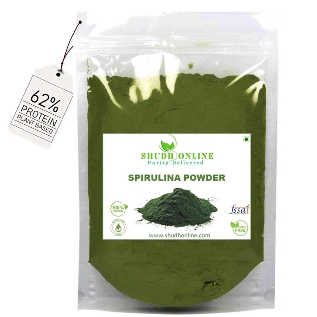 Spirulina is a natural (cyanbacteria) powder that is incredibly high in protein and a good source of antioxidants B-vitamins and other nutrients. When harvested correctly from non-contaminated ponds and bodies of water it is one of the most potent nutrient sources available. It is largely made up of protein and essential amino acids and is typically recommended to vegetarians for its high natural iron content. It is a powerful organic super food is the richest nutrient source energy booster and one of the best nutrient supplement for vegetarians. It helps in weight reduction and is rich in protein minerals and phyto-nutrients that keep your body healthy. Shudh Online's Spirulina has a very high concentration of bio-available iron and is excellent during pregnancy and for those with anemia and will not cause constipation. The proteins and nutrients in Spirulina are very bioavailable and easy to absorb.