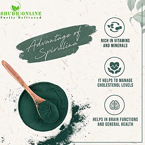 Shudh Online Spirulina Powder Organic 200 g | Certified Organic Dried Spirulina Powder for face, Dried Protein Green Algae Powder, Plant based Superfood for Smoothie