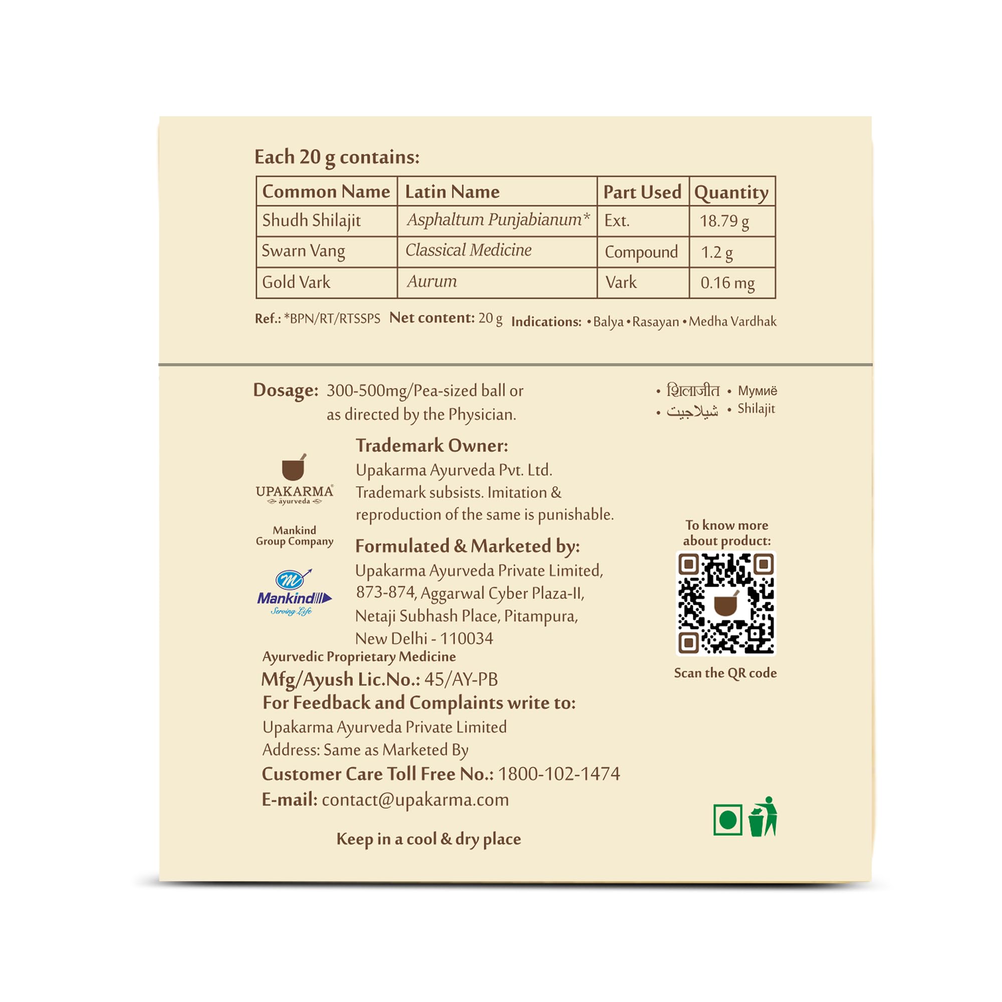 Pure and Authentic - Pure Shilajit Gold Dust by Upakarma Ayurveda is a powerful health and immunity booster. The high concentration of minerals Fulvic and Humic acids in Shilajit provides innumerable benefits. It is a natural dietary supplement with Gold