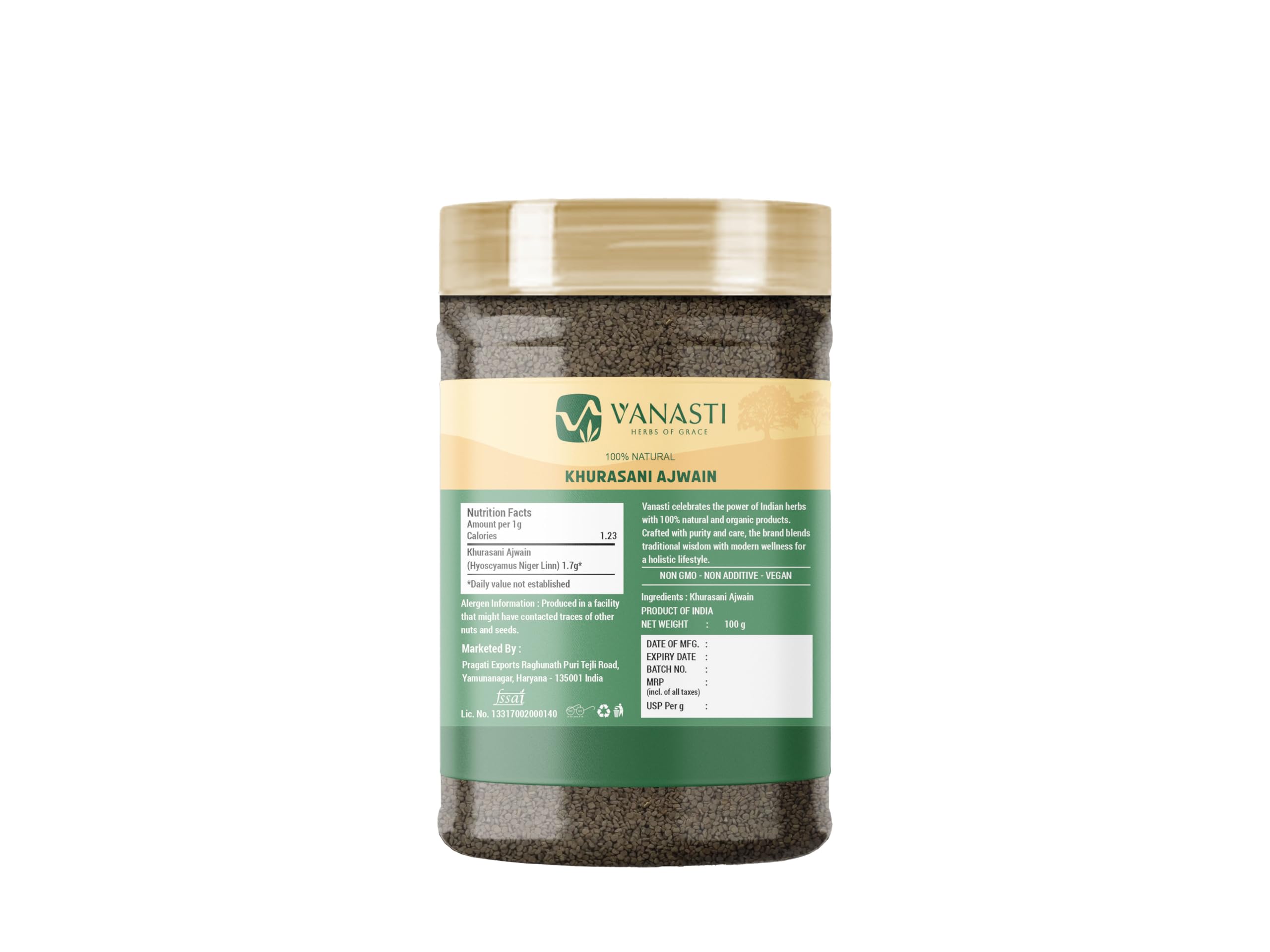Khurasani Ajwain (Hyoscyamus niger Linn.), or Black Henbane, is a biennial herb from the Solanaceae family. It has oval leaves and yellow-green flowers with purple veins, producing small seeds. Native to temperate areas of Asia, Europe, and North Africa, the plant contains alkaloids like hyoscyamine, atropine, and scopolamine. Seeds and dried leaves are used in herbal blends and cultural practices for their distinct aroma.