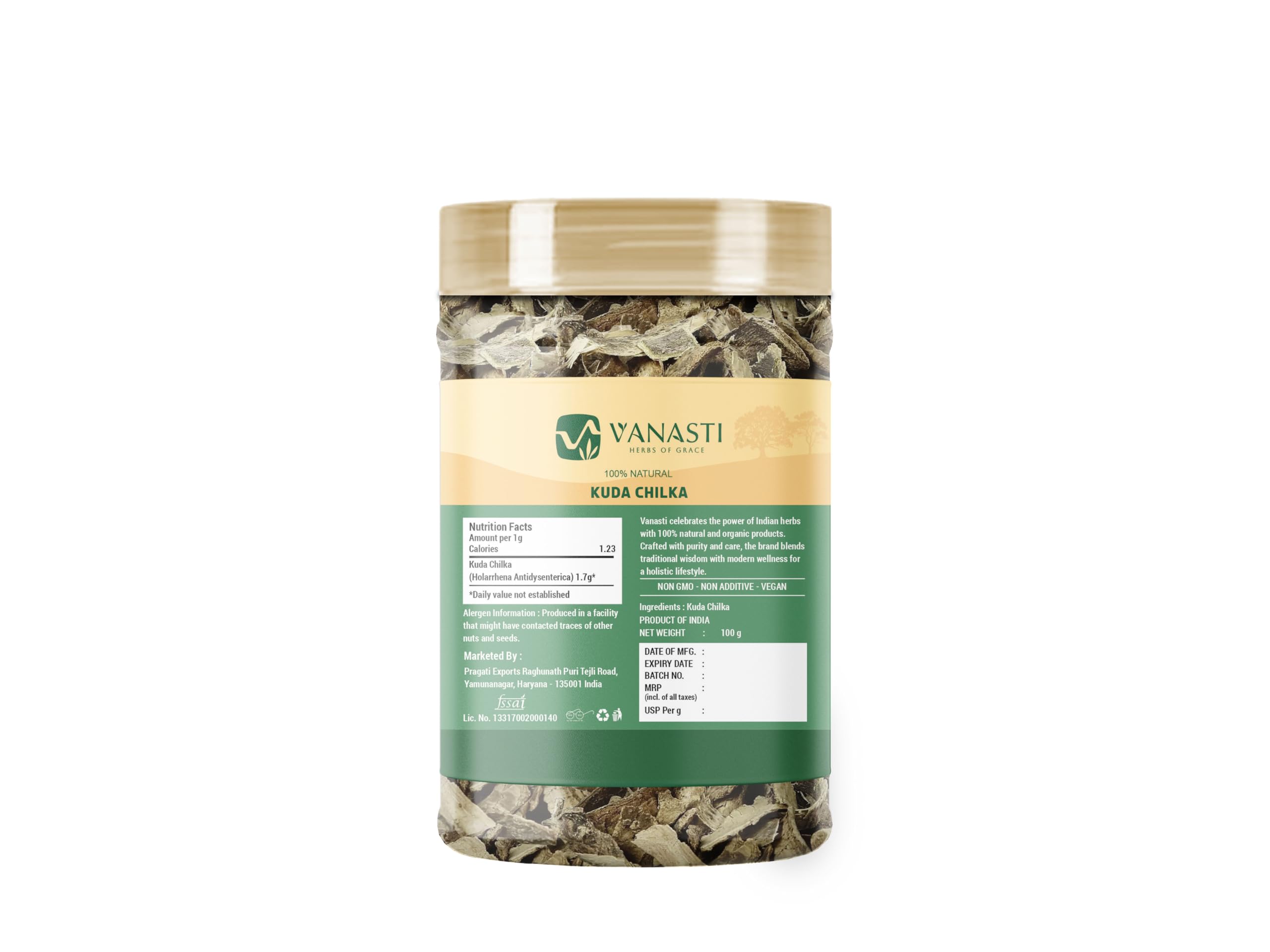 Kuda Chilka, also known as Kutaj or Holarrhena bark, comes from the Holarrhena antidysenterica tree.The bark is light brown to grayish, rough in texture, and often used in dried or powdered form.It grows widely across India and Southeast Asia, especially in dry forests.Kuda Chilka is occasionally included in traditional herbal mixtures for its plant content.The bark contains natural compounds and is valued for its woody texture and earthy scent.It is mainly used in select formulations and dry botanical blends.