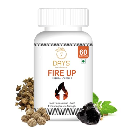 • MADE WITH NATURAL INGREDIENTS: 7 Days Fire Up Testosterone Booster Capsule is made from a blend of natural ingredients like Ashwagandha Safed Musli Gokhru Kaunchbeej and Shatavari.