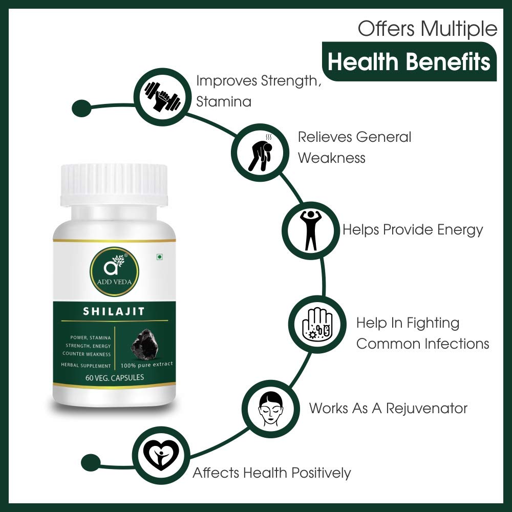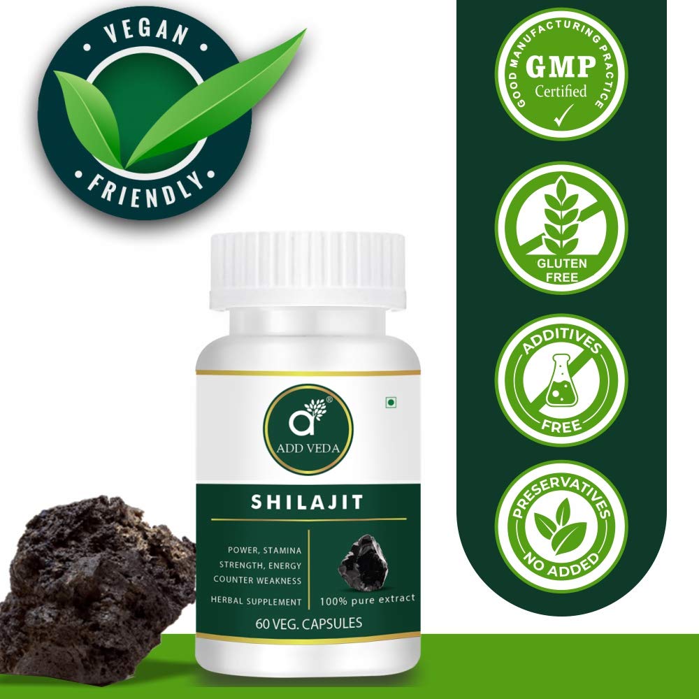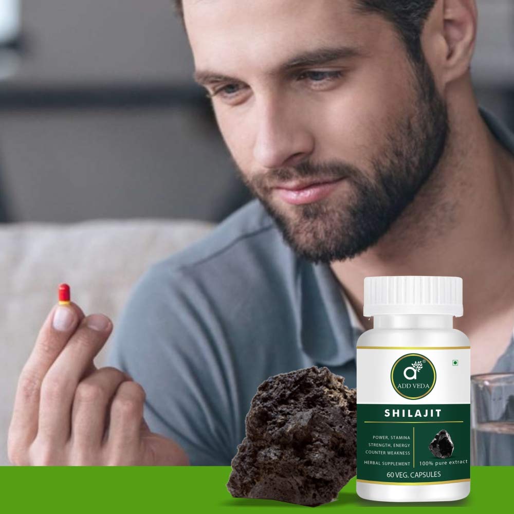 ADD VEDA Pure Shilajit Extract Power Booster Capsules - 500 mg For Strength Stamina Vitality And Overall Health (30 Capsules)
