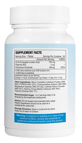 Alpspure Nutra CLA Tablets 750Mg Fat Burner With Chromium Picolinate, Piperine, Supports Weight Management - 120 Tablets