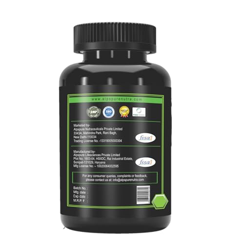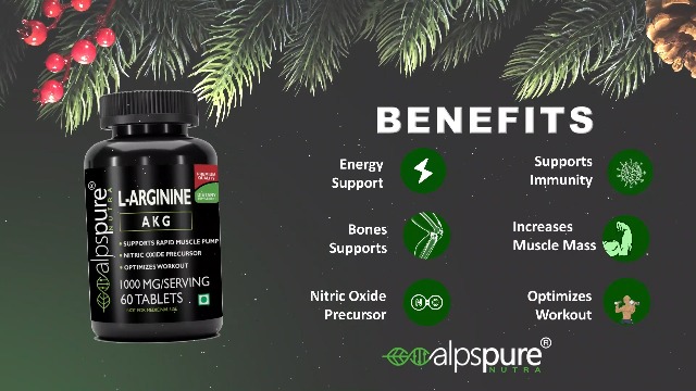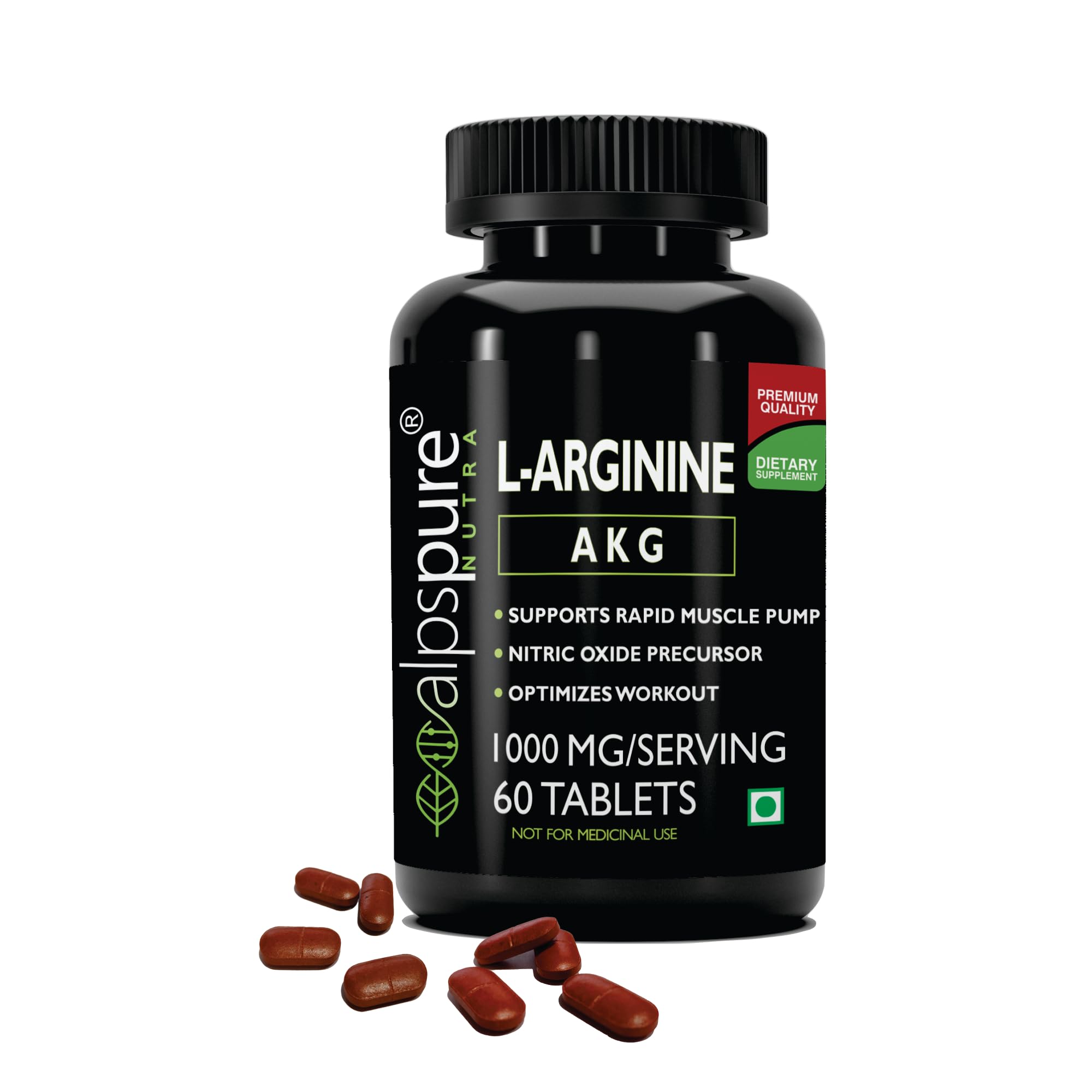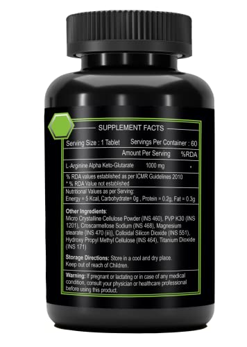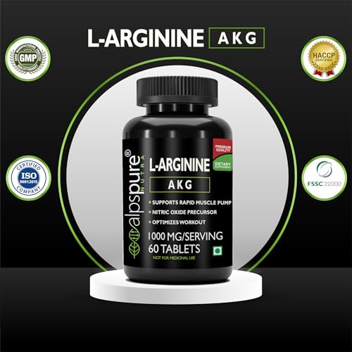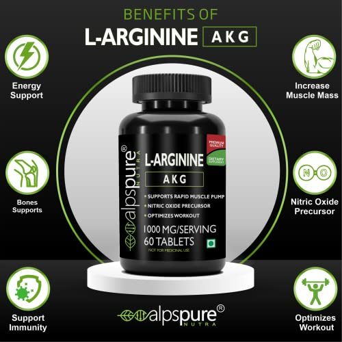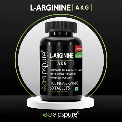 Alpspure Nutra L-Arginine AKG 1000 mg (60 Veg Tablets) | Boosts Stamina & Supports Rapid Muscle Pump | Nitric Oxide Precursor | Muscle Building Amino Acid | High Absorption L Arginine Supplement