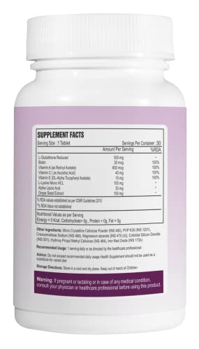 HomeHealth & PersonalDiet & NutritionHealth SupplementsAlpspure Nutra L-Glutathione Tablets with Biotin, Vitamin A.C, E, Alpha Lipoic Acid & Grape Seed Extract (30 Tablets) For Healthy and youthful Glowing Skin for Men and Women Pack of-1