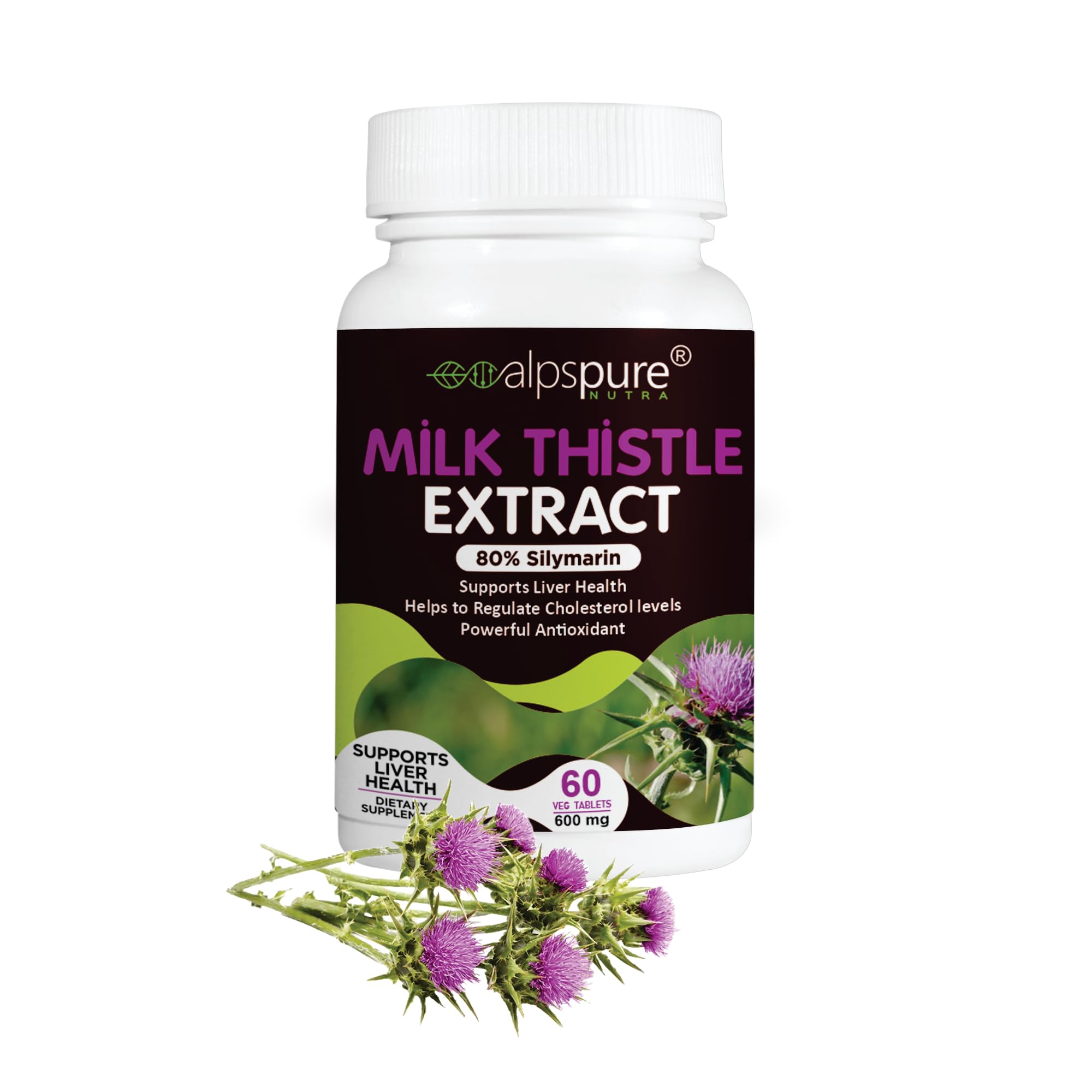 Alpspure nutra milk thistle extract is a powerful health support & detox tablets made from organic silybum marianum making it a 100% natural product. Milk thistle extract also known as silymarin is highly beneficial for a healthy digestion system and regu