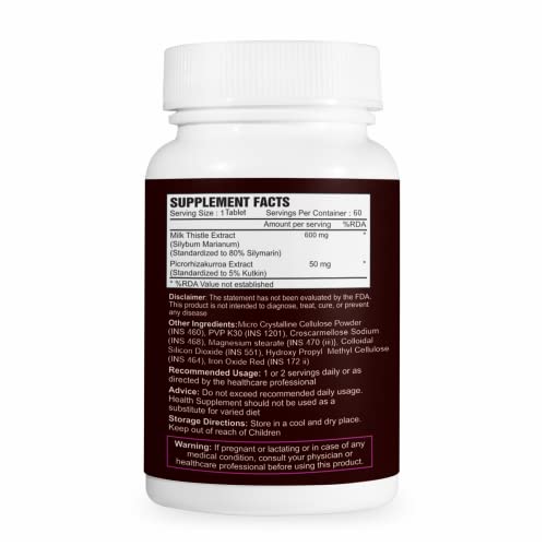 Milk thistle extract has been combined with picrohiza kurroa extract to make it one of the most useful liver support tablets for a healthy digestion system. Each serving gives you 250 mg of milk thistle extract standardized to 80% silymarin and 50 mg picr