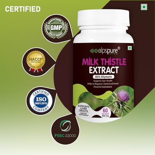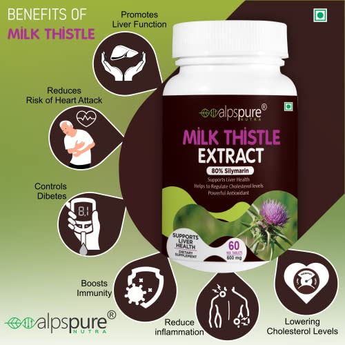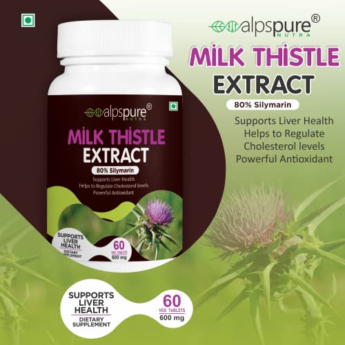 Alpspure Nutra Milk Thistle Extract Tablets -80% Silymarin | Liver Support & Detox Supplement (60 Tablets) Helps in Cleanse Liver for Men and Women pack of-1