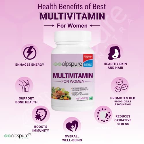 Multivitamin for women contains Vitamin C Vitamin D Vitamin E Folic Acid Zinc Copper Selenium that support the immune functions of our body thereby building stamina energy and keeps our body alert and active every time.
