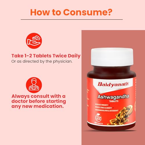 Baidyanath Ashwagandha 60 Tablets for General Wellness | Helps Release Stress & Anxiety (Pack of 1)