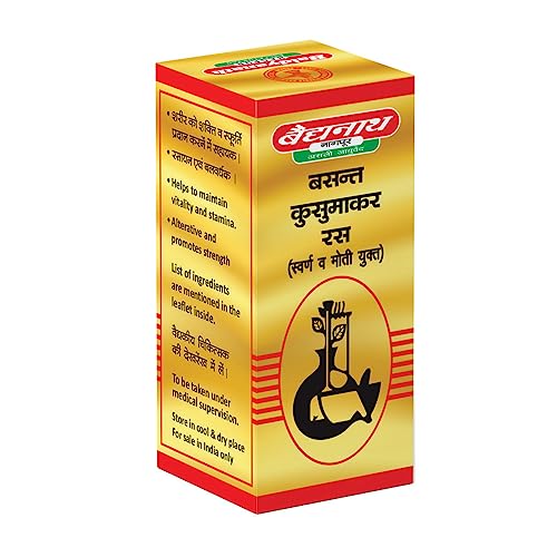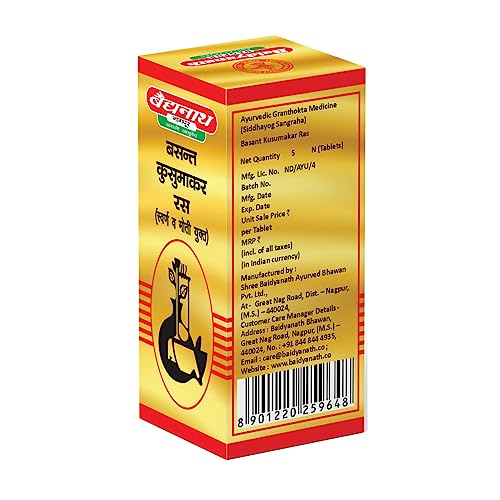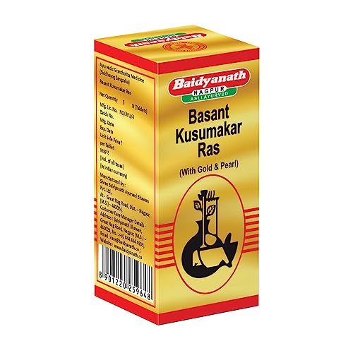 Baidyanath Vasant Kusumakar Ras (with Gold & Pearl) | Aids in Sugar Balance - 5 Tablets. One of Indiaâs most respected Companies Shree Baidyanath Ayurved Bhawan Pvt. Ltd. (Kolkata) popularly known as Baidyanath is the acknowledged leader of Ayurvedic know-how. Established in 1917 the Company has played a pioneering role in re-establishing ancient knowledge with modern research and manufacturing techniques. AYURVEDA is a 5000 year old Science of health care and herbal treatment. AYURVEDA is highly effective in common and complicated ailments assures long term relief and has no side effects. AYURVEDA is now backed by modern scientific research and technologies and provides its gentle healing touch to millions around the world.