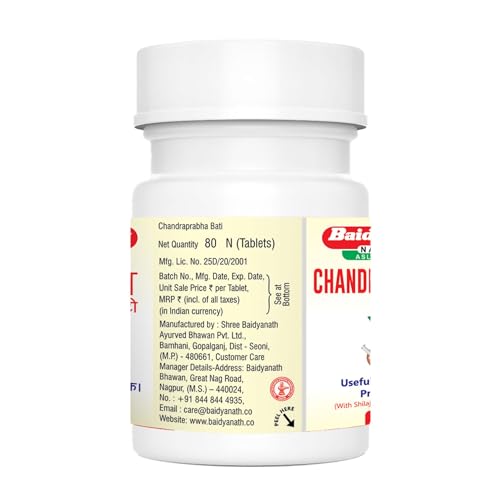 Baidyanath Chandraprabha Bati (80 Tabletsx4). One of Indiaâs most respected Companies Shree Baidyanath Ayurved Bhawan Pvt. Ltd. (Kolkata) popularly known as Baidyanath is the acknowledged leader of Ayurvedic know-how. Established in 1917 the Company has played a pioneering role in re-establishing ancient knowledge with modern research and manufacturing techniques. AYURVEDA is a 5000 year old Science of health care and herbal treatment. AYURVEDA is highly effective in common and complicated ailments assures long term relief and has no side effects. AYURVEDA is now backed by modern scientific research and technologies and provides its gentle healing touch to millions around the world.