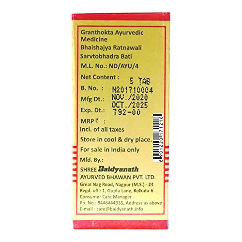 Baidyanath Sarvtobhadra Bati (With Gold & Roupya) Kidney Health Support - 5 Tablets