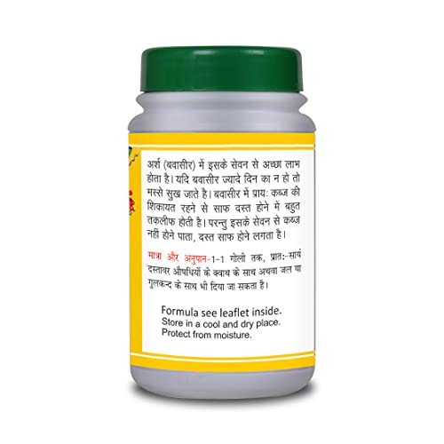 • Direction for use: It is recommended to take 1 to 2 Arsha Kuthar Ras Tablets (250 to 500mg) in the morning and evening with butter milk or as directed by the physician. Always adhere to the dosage recommended by the ayurvedic doctor or healthcare expert.