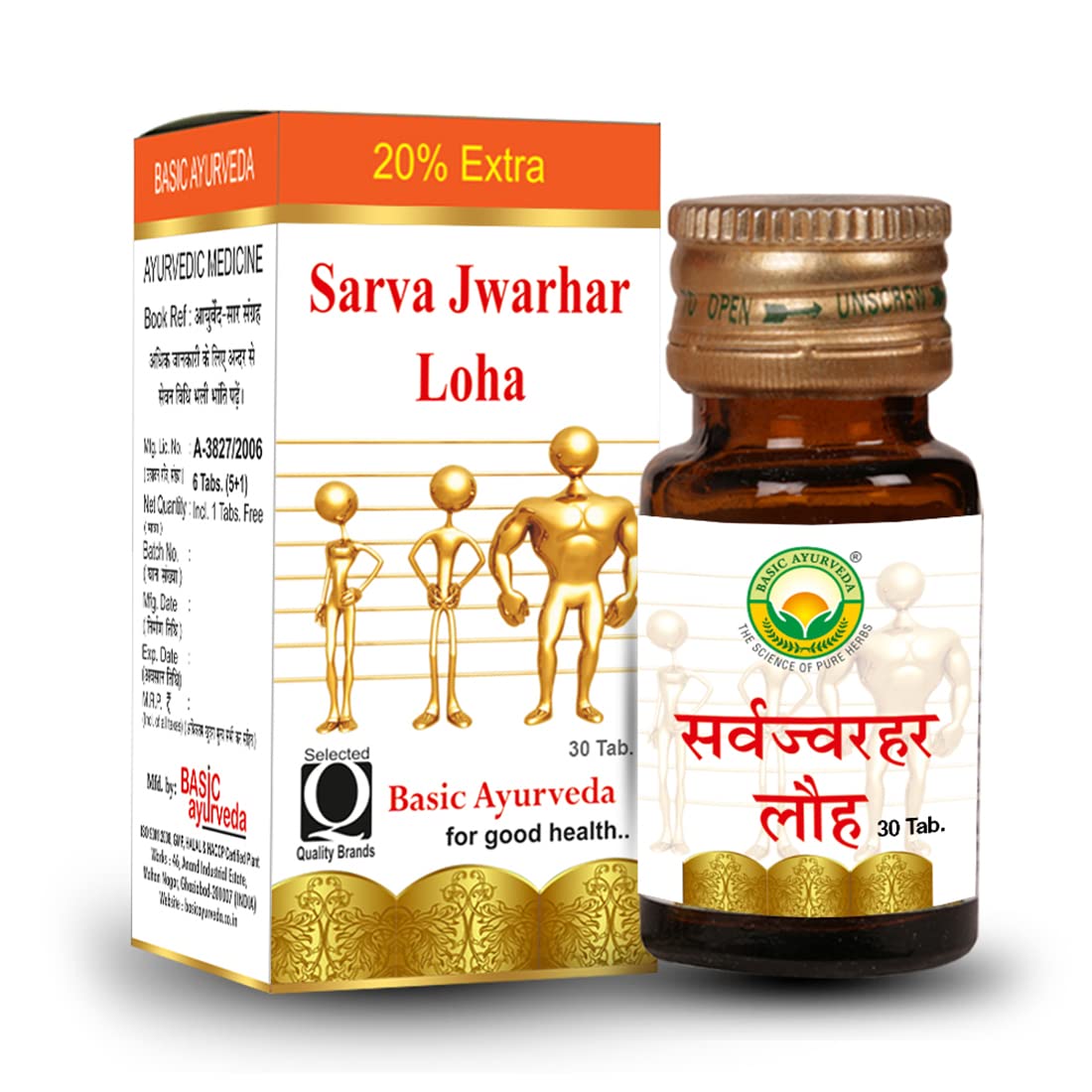 Basic Ayurveda Sarva Jwarhar Loha with Gold 30 Tablets Pack of 2 | Herbal Supplement for Good Health & Immunity
