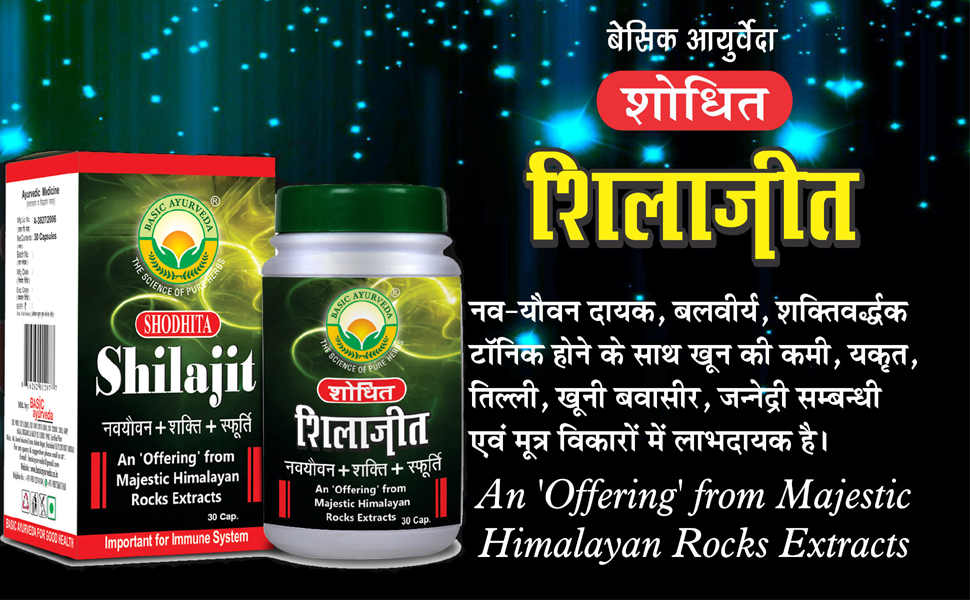 • Basic Ayurveda Shodhita Shilajit Capsule brings balanced and pleasant health because it contains a restorative tonic and its increases energy and body strength.