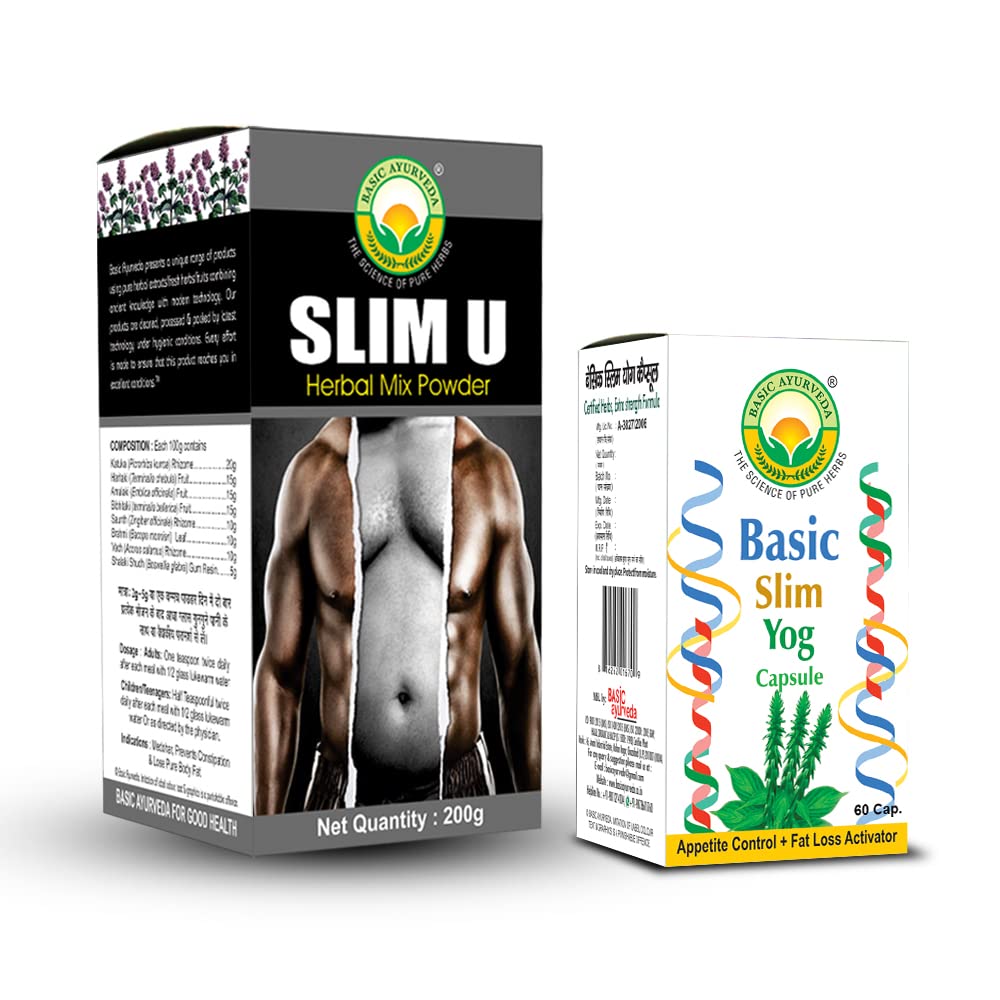 • Slim U Herbal Mix Powder and Basic Slim Yog Capsule both are a combo of Basic Ayurveda that works effectively on weight management. Induces natural destruction and elimination of plump cells and inhibits the accumulation of excess lipids.