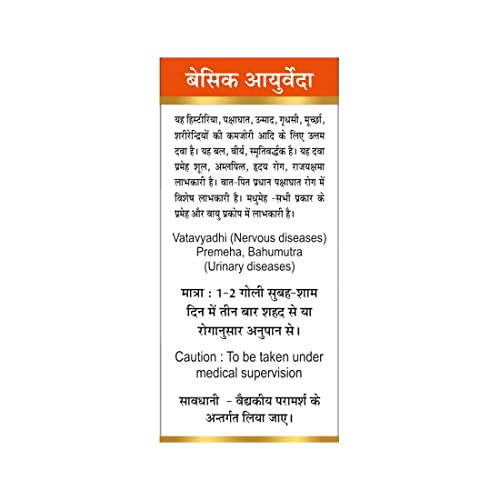 • Direction for use: Take 1-2 tablets morning and evening with honey or according to problems or as directed by the physician. Always adhere to the dosage recommended by the ayurvedic doctor or healthcare expert.
