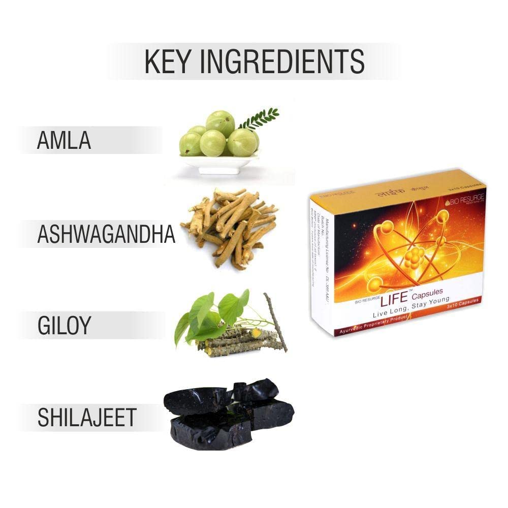 Bio Resurge Life Capsule - Ayurveda Immunity Boosters for Adults Zinc Vitamin C B6 A D E & Immunity Blend of Amla Giloy Tulsi & Ashwagandha (3x10 Capsules)