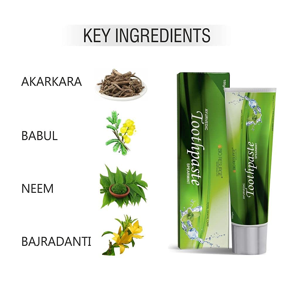 Bio Resurge Life Herbal Ayurvedic Complete Care and Anticavity Spearmint Toothpaste (fight cavities Causing germs and swelling of gums) (Pack of 2 x 100 gm)
