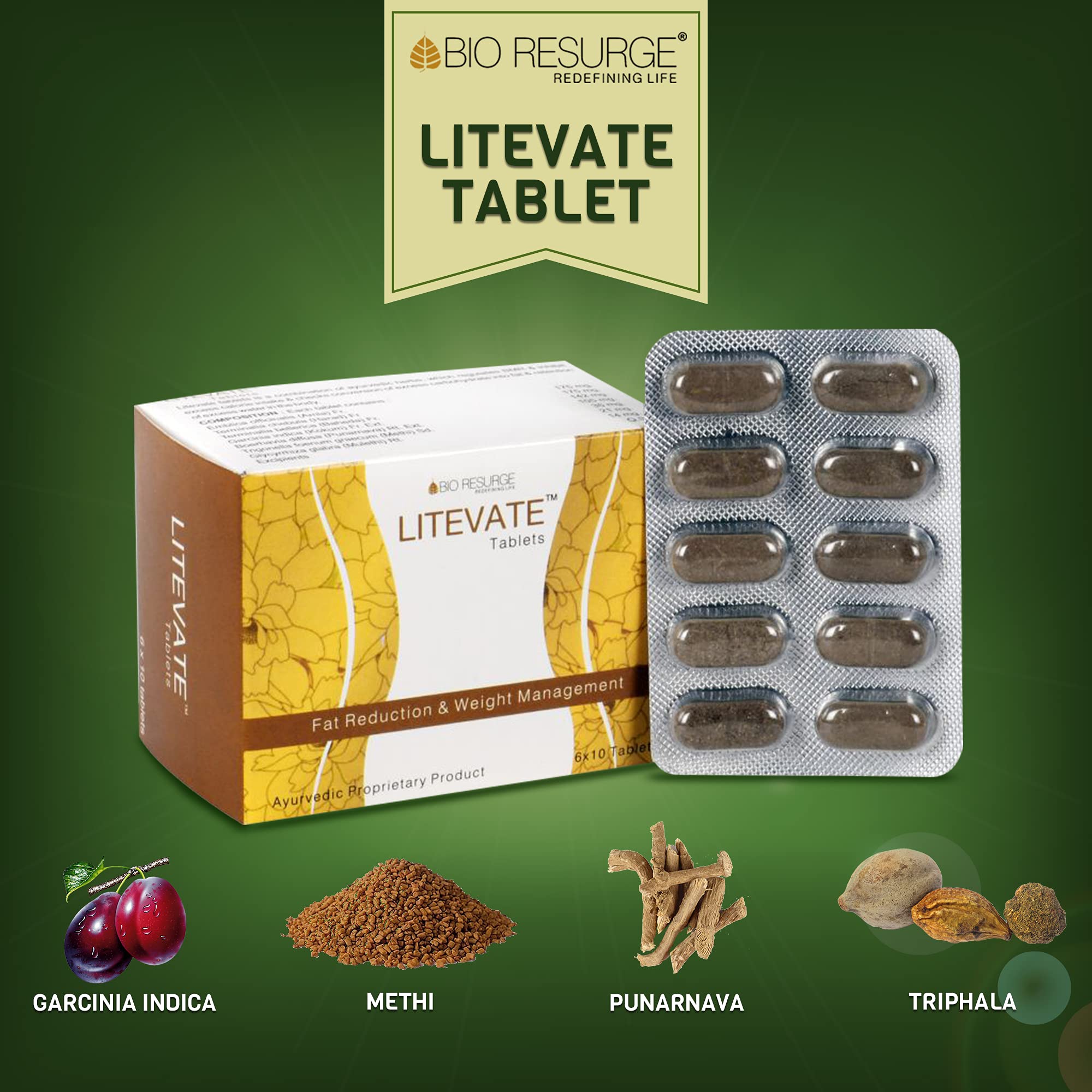 Bio Resurge Life Litevate Tablets | Ayurvedic Weight Management Supplement | Boosts Metabolism | Controls Appetite: 60 Talets(Pack of 1)
