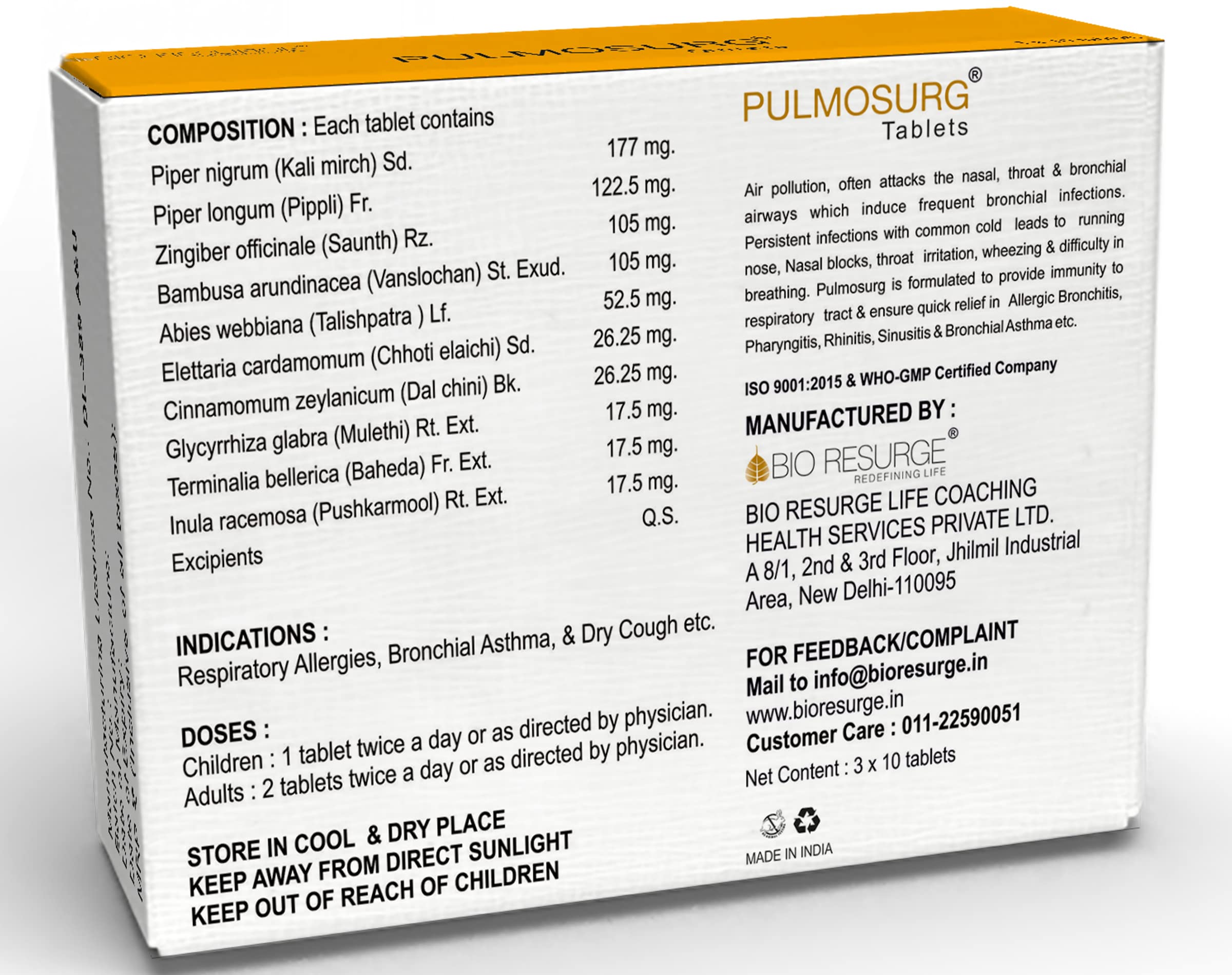Bio Resurge Life Pulmosurg Ayurvedic Cough and Asthma Relief Tablet Pack of 30 Tablets