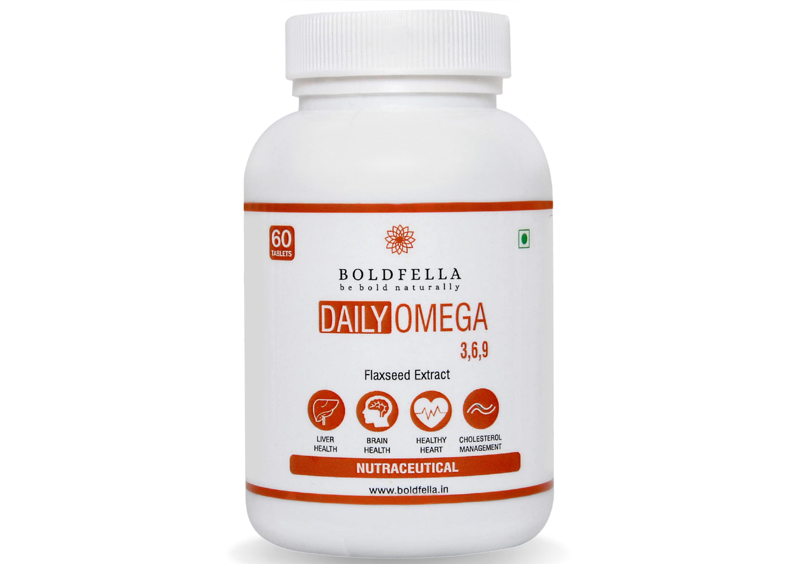 Boldfella DAILYOMEGA - 100% Vegetarian Flaxseed Extract Omega Supplement - Supports Liver Health Brain Health Healthy Heart And Cholesterol Management - 60 Tablets