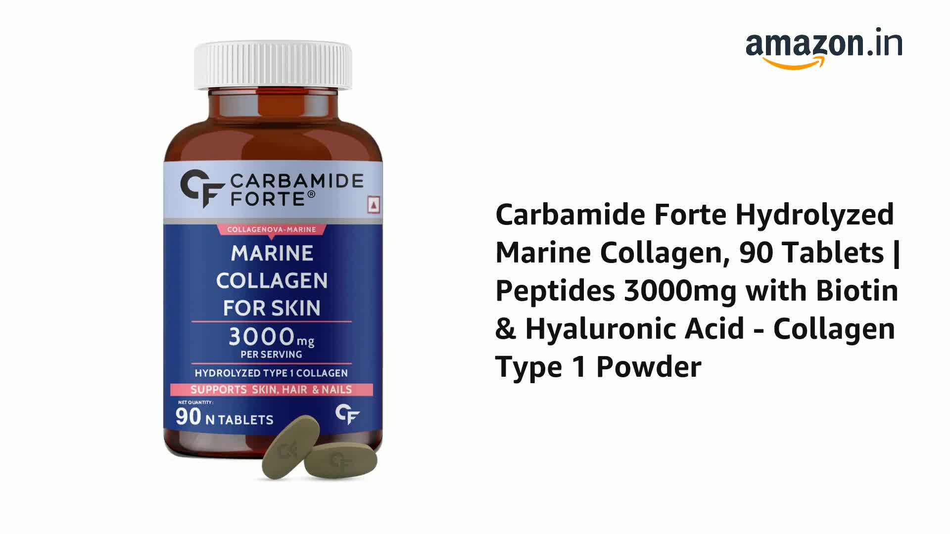 HomeHealth & PersonalDiet & NutritionHealth SupplementsCarbamide Forte Hydrolyzed Marine Collagen Supplements for Women & Men | 3000mg Marine Collagen Tablets for Women & Men | Marine Collagen Peptides with Biotin & Hyaluronic Acid & Hydrolyzed Collagen - Collagen Supplement with Type 1 Marine Collagen Powder
