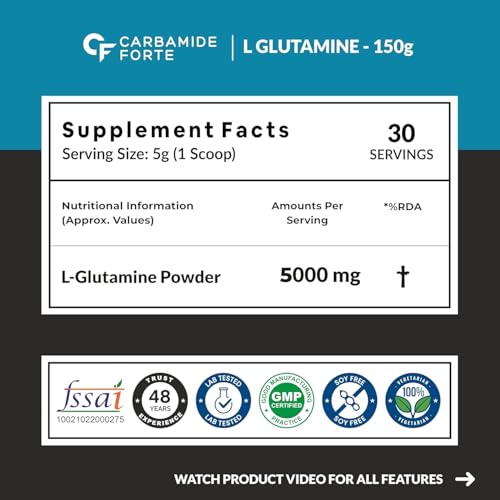 HomeHealth & PersonalDiet & NutritionHealth SupplementsCarbamide Forte L Glutamine Supplement for Men | L Glutamine Powder 5000mg | Glutamine Supplement for Men | Post Workout Muscle Recovery Supplements - Unflavoured - 150 grams
