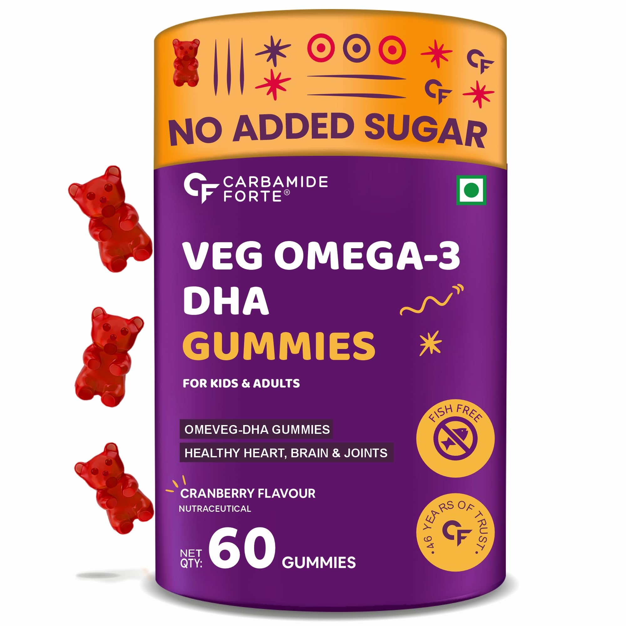 HomeHealth & PersonalDiet & NutritionHealth SupplementsCarbamide Forte Veg Omega3 DHA 250mg - Gummies for Men, Women & Kids with Vegetarian DHA | No Fish oil Used | Omega Veg DHA Gummies | Healthy Heart, Brain & Joints - 60 Veg Gummies