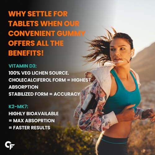 KEEPS YOUR HEART HEALTHY AND BONES STRONG: Vitamin K2-MK7 directs the Calcium from your bloodstream to your bones for better absorption. These D3 Vitamin Supplement gummies for women and adults may help prevent arteries from clogging. Improved Calcium abs