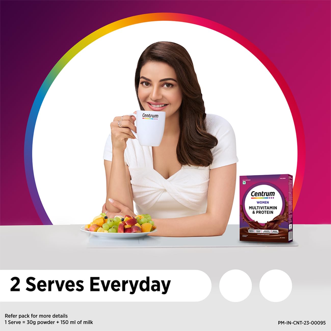 Do you want to live your multilife with confidence and feel the best version of yourself? Look no further! Centrum presents Centrum Women Multivitamin & Protein a multivitamin multimineral powder to meet your daily nutrition needs. Your daily dose of tasty nutrition is formulated with 24 Vital Vitmains and Minerals. Centrum formulations have been tailormade for Indian diets and body needs. Zinc Iron support Overall Health and Calcium Phosphorus strengthen Bones. Biotin Vitamin E aid Hair and Skin Health. Nutrients such as Vitamin B1 Protein boost Energy and Stamina. Centrum Women Multivitamin & Protein is 100% vegetarian. You can refer pack for usage and administration instructions or can consult your health care practioner. For storage conditions please refer the pack. For references please refer to Centrum India's website.