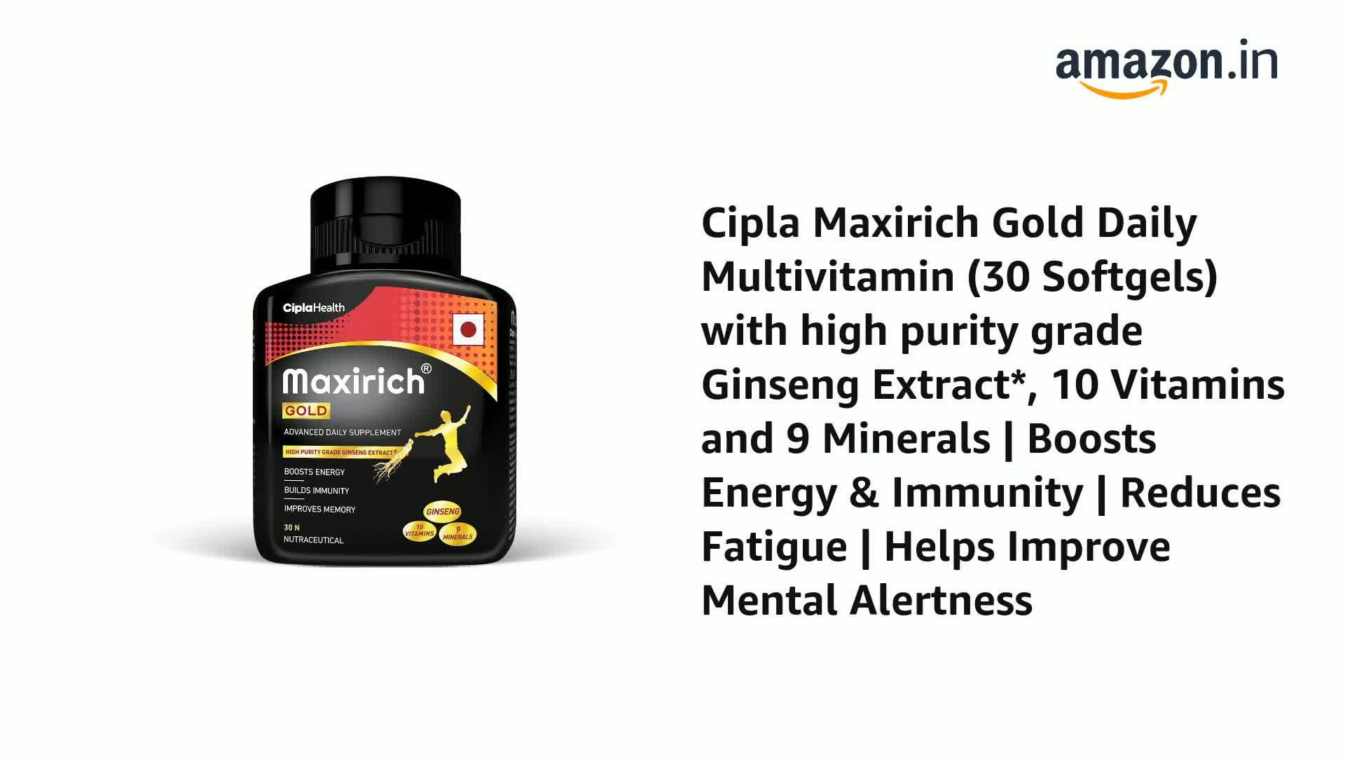 The softgels are convenient to take, and the inclusion of high-purity grade Ginseng Extract along with 10 vitamins and 9 minerals caught my attention. The combination aims at boosting energy, improving immunity, reducing fatigue, and enhancing mental alertness.I've noticed a gradual increase in energy levels throughout the day, making it easier to stay focused and alert. The multivitamin's impact on immunity is reassuring, especially in times when maintaining a strong immune system is crucial.The softgels are easy to digest, and I haven't experienced any discomfort after taking them. The packaging is travel-friendly, allowing for consistency in consumption even when on the go.While it's challenging to attribute all improvements solely to the multivitamin, I believe it plays a role in supporting overall well-being. The Ginseng Extract, in particular, seems to contribute positively to sustained energy levels.If you're in search of a comprehensive daily multivitamin that goes beyond basic requirements, the Cipla Maxirich Gold is worth considering. It offers a combination of vitamins, minerals, and Ginseng Extract to provide a holistic boost for energy, immunity, and mental alertness.