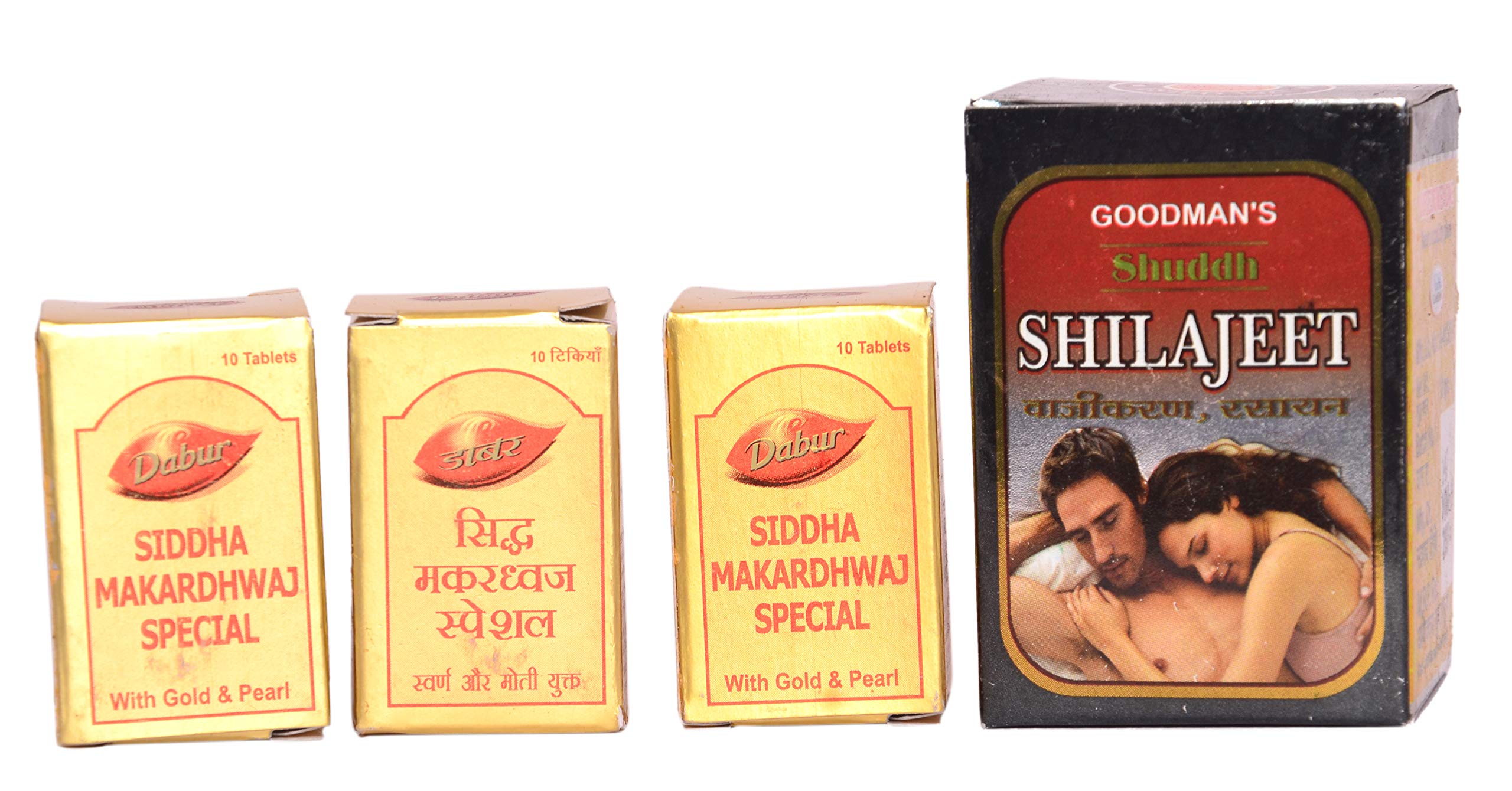 Dabur Siddha Makardhwaj Special (Swarna Yukt) 10 Tablets Pack Of Three(3) With Goodman's Shilajeet 10 Gm